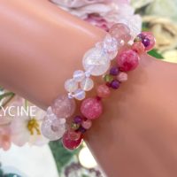 大人ピンク色♪ロードナイト、インカローズ、ルビー、ペリドットのパワーストーンブレスレット①