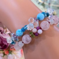 苺色♪モルガナイト、ムーンストーン、ピンクオパール、ルビー、ペリドットのパワーストーンブレス①