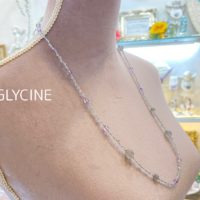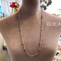 ご紹介中の新作のロングネックレスを着けるとこんな感じになります。 ロングネックレ …