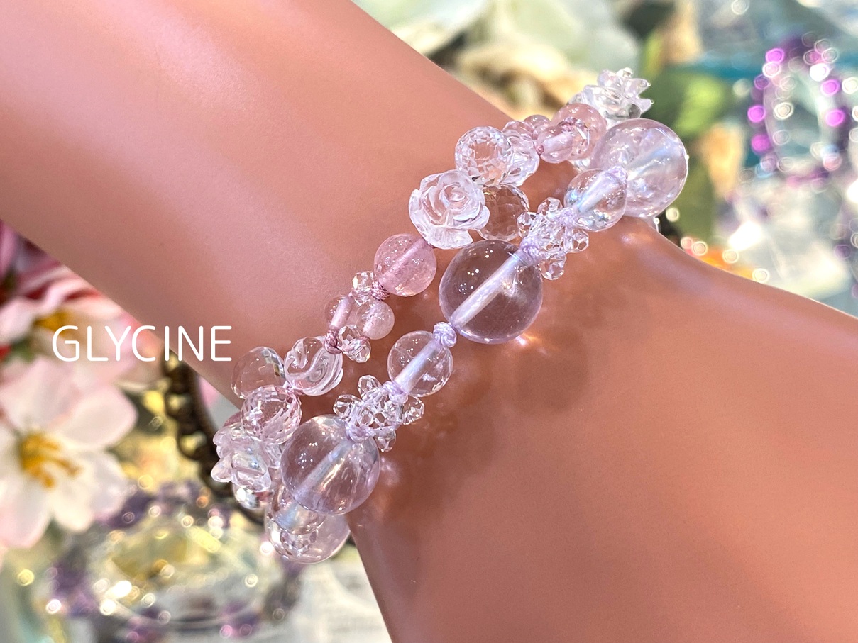 ご紹介中の新作のパワーストーンブレスレットに使ったクンツァイトと水晶はこちらです。