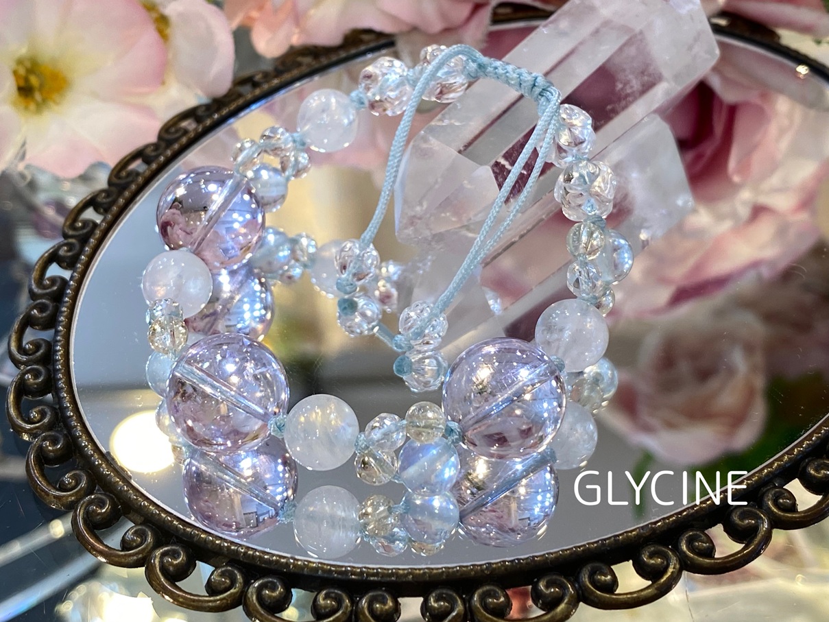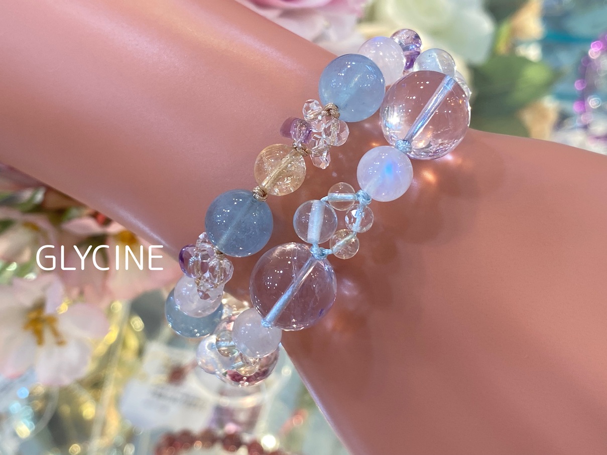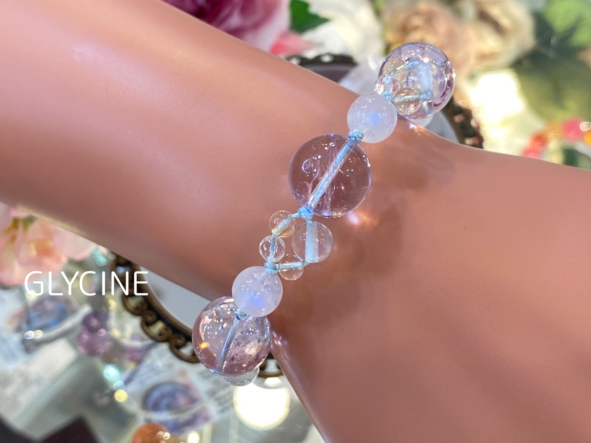 優しいお色のパワーストーンブレスレットと一緒にお出掛けしたい時のお供にいかがでしょうか。