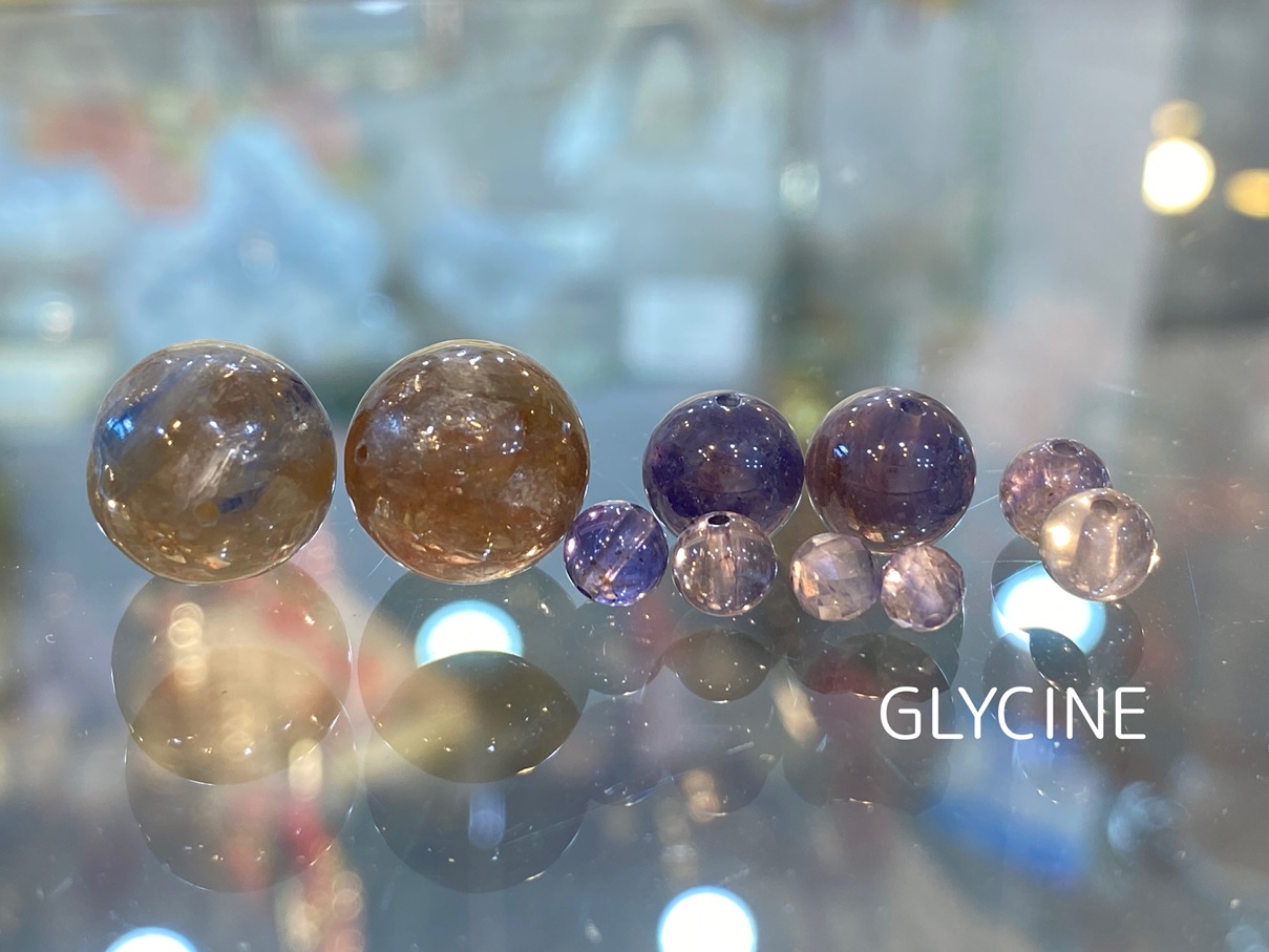 一番小さな丸玉のアイオライトにはカットが施されています。
