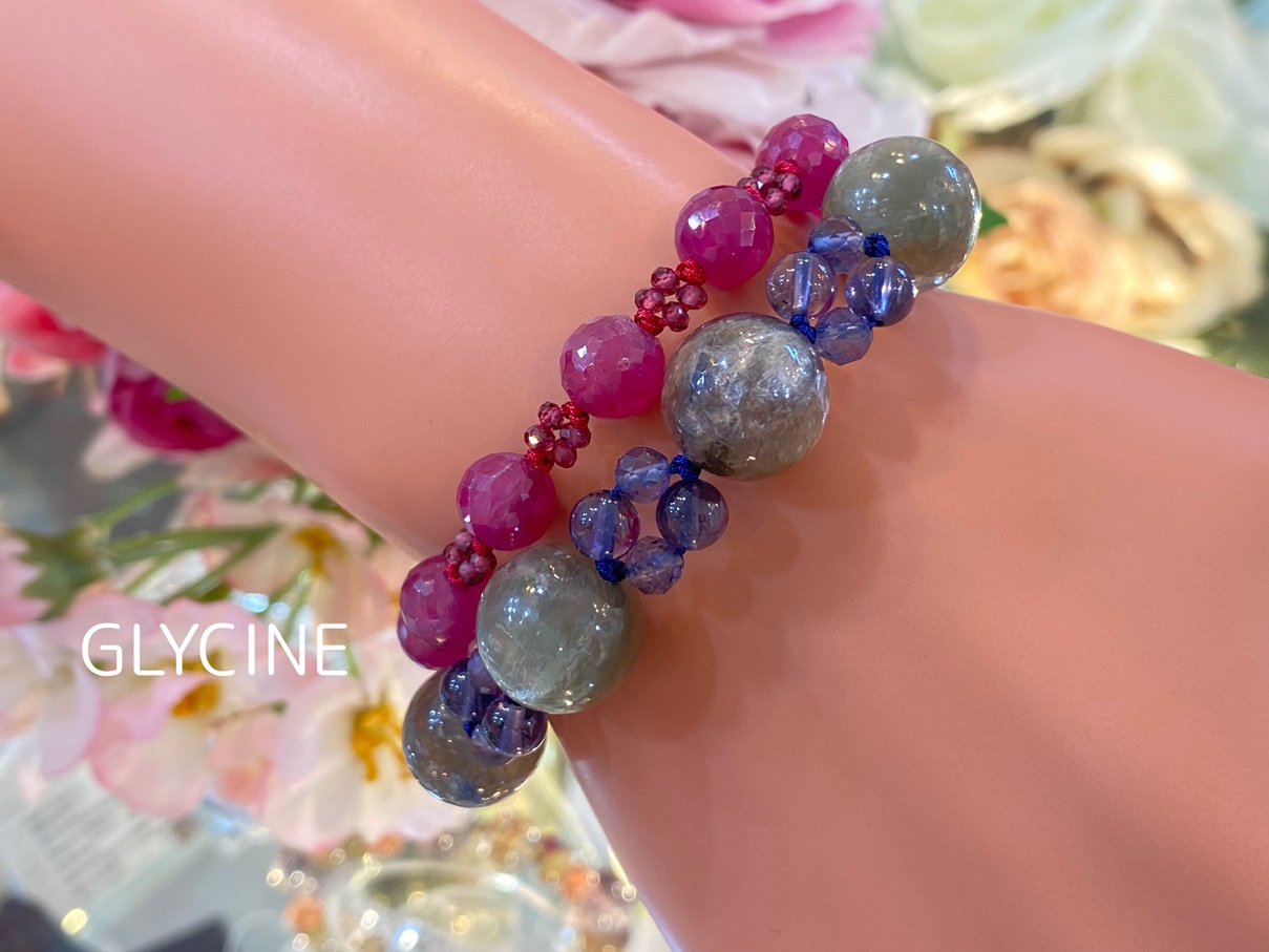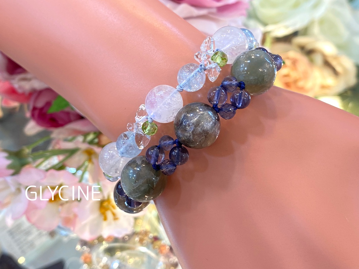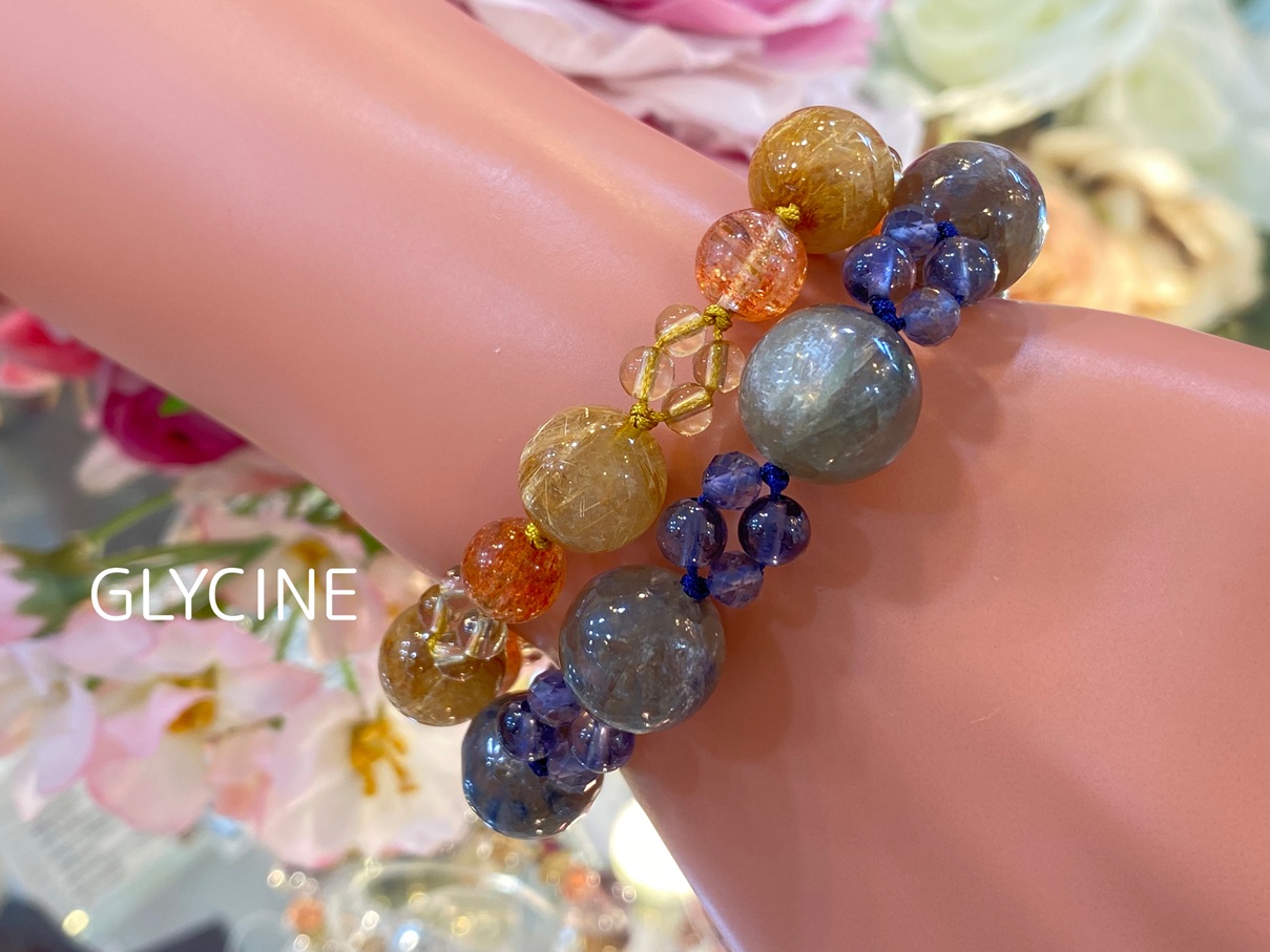 ご紹介中の新作のパワーストーンブレスレットに使ったカイヤナイトインクォーツとアイオライトはこちらです。