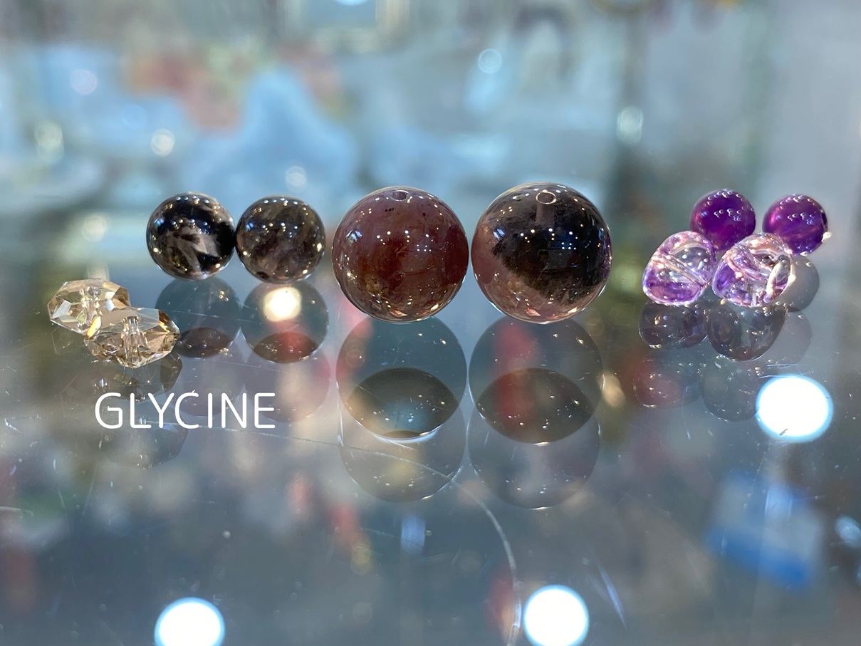 大玉はスモーキークォーツとアメジストが混ざったようなお色が見えますが、小さい方の丸玉はアメジストのお色は分かり難いです。同じタイプの粒なのですが大きい方と小さい方では見た目のお色が異なります。