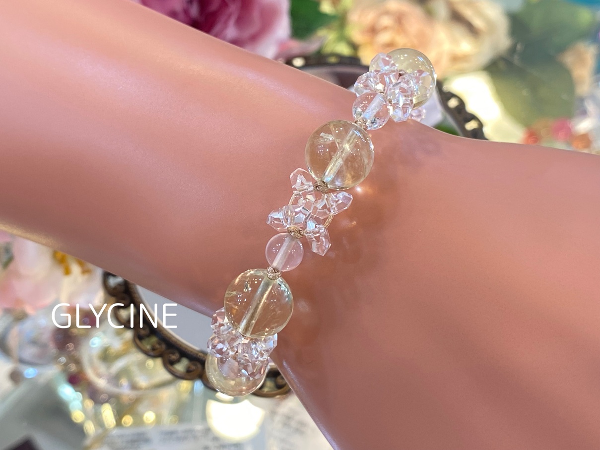 シトリンと水晶とローズクォーツの3種類の天然石でデザインした