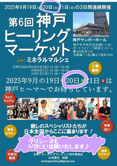 去年も出展させていただきました『神戸ヒーリングマーケット』に今年もお邪魔させていただきます(*^^*)