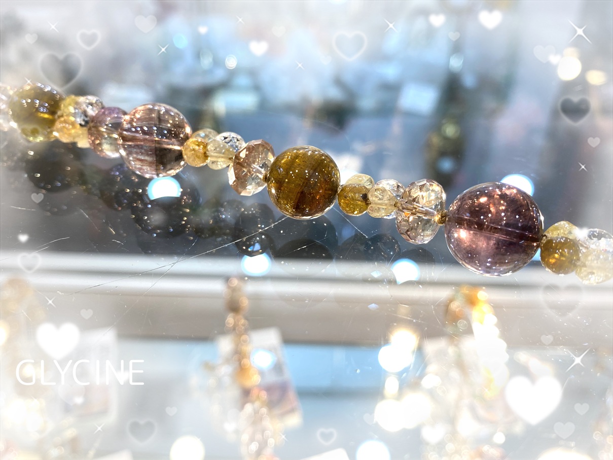 ご紹介中の新作のパワーストーンブレスレットに使った、スーパーセブンとトルマリンとアメトリンはこちらです。