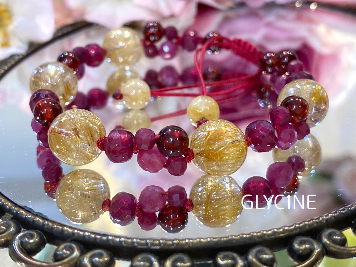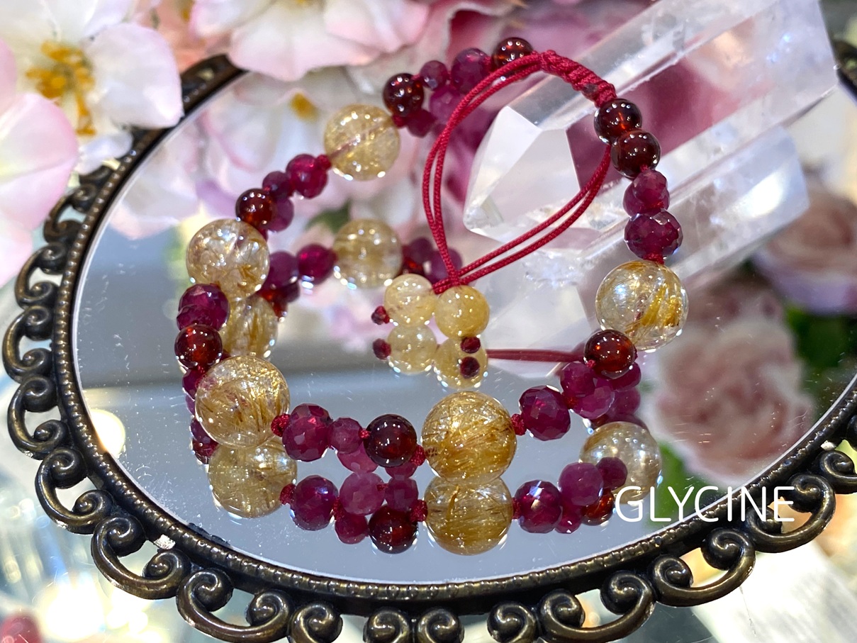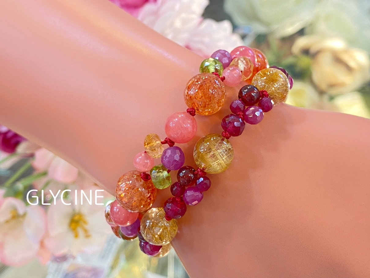 ご紹介中の新作のパワーストーンブレスレットに使ったルチルクォーツ、ルビー、ガーネット、ピンクトルマリンはこちらです。