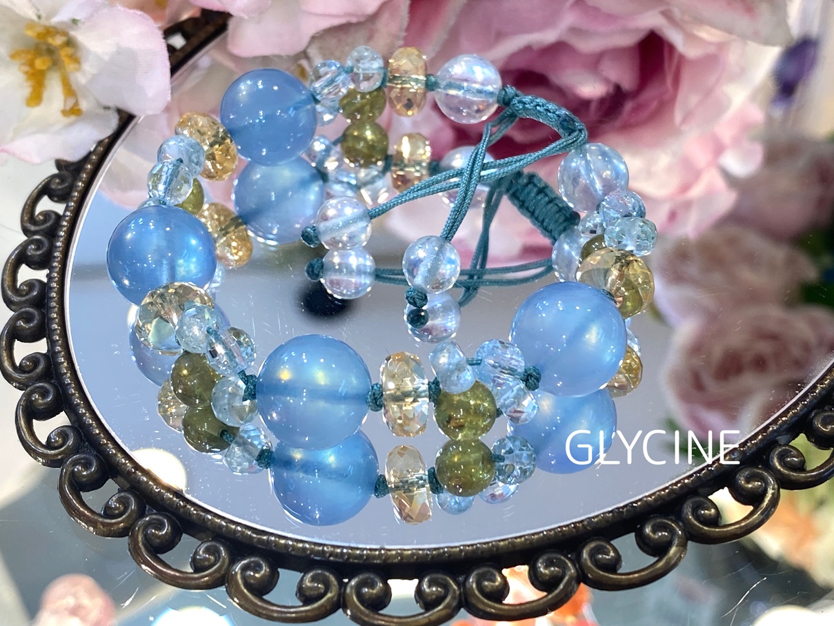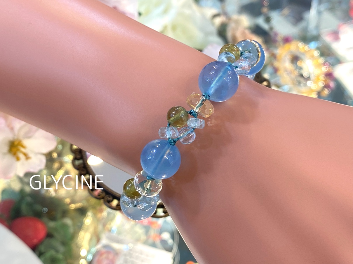 とってもお洒落で大人っぽい水色のパワーストーンブレスレット♪