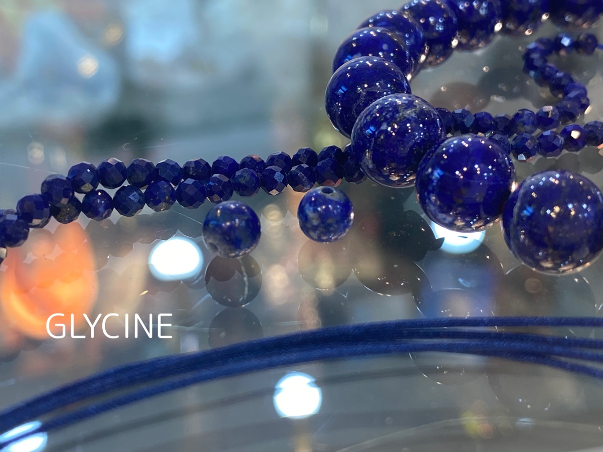 普通の粒サイズ6ミリと小粒の3種類のラピスラズリを使いました。