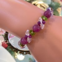 力強い紫色の薔薇ブレス♪アメジスト、ルビー、ペリドットのパワーストーンブレスレット①