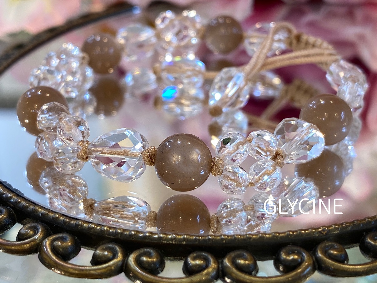 今日も、ロイヤルミルクティーみたいなお洒落なお色のムーンストーンに水晶を合わせてデザインした新作のパワーストーンブレスレットのご紹介です。