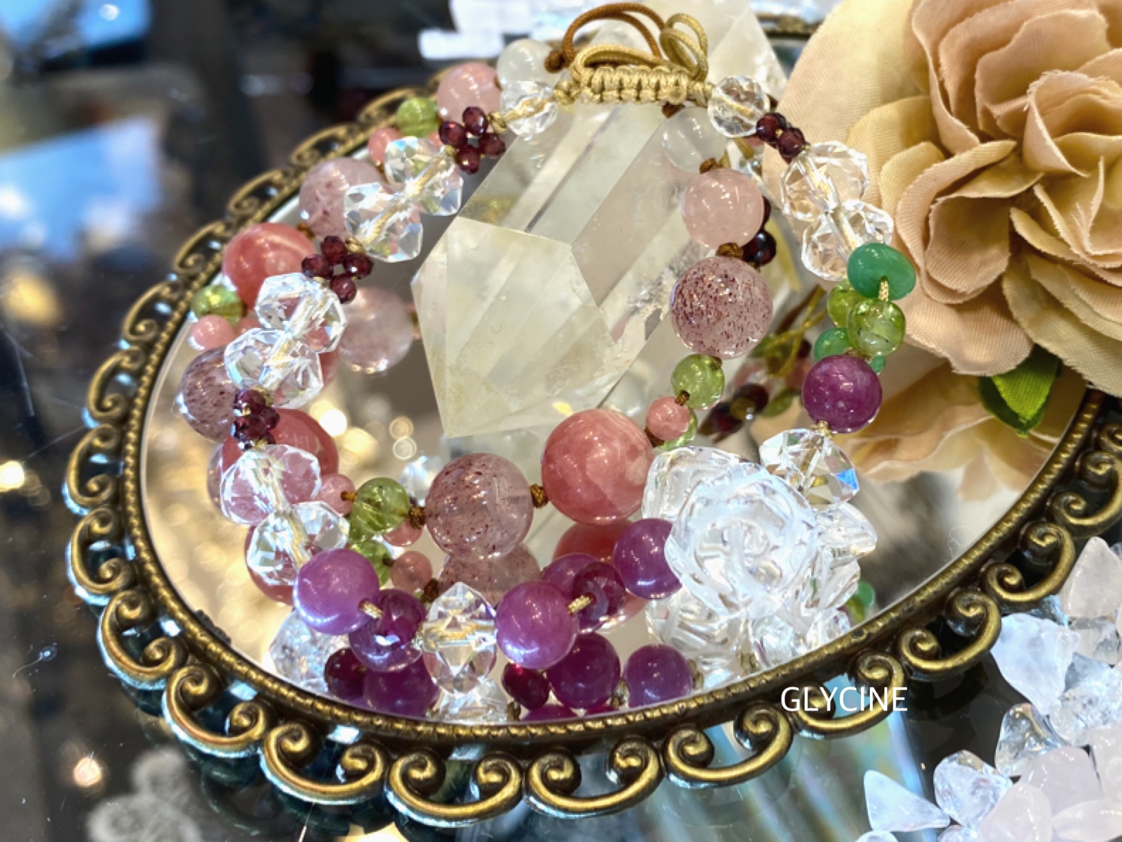大胆カットの薔薇水晶がアクセントになったパワーストーンブレスレットの