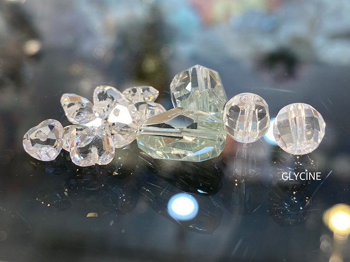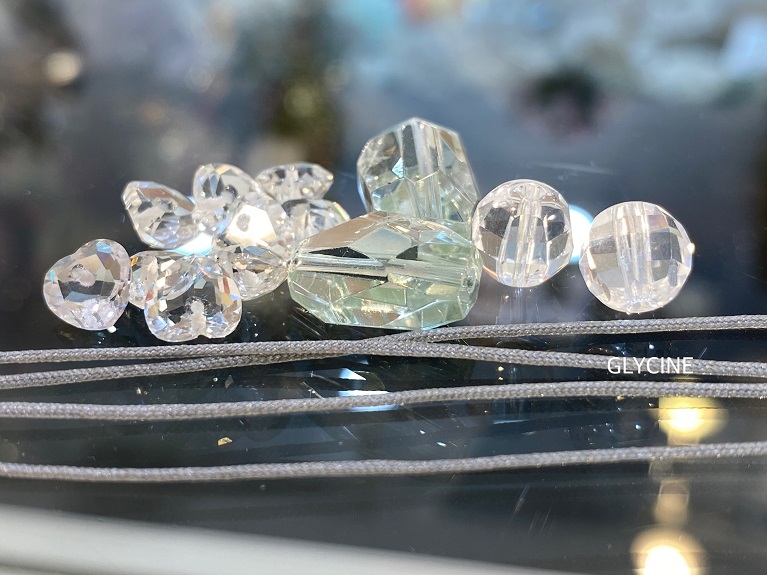 グリーンアメジスト(プラシオライト)は、2種類の形の粒を用意しました。