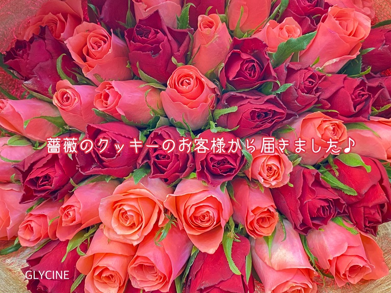 薔薇のクッキーのお客様が届けてくださった薔薇の花束♡