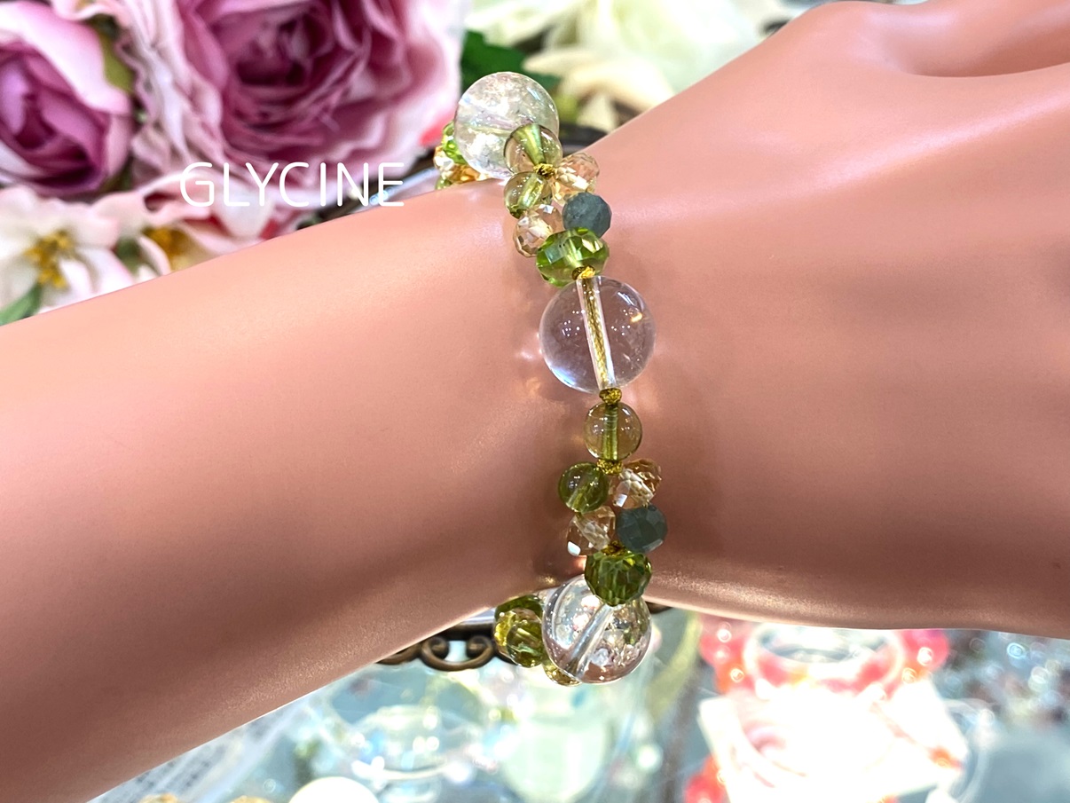 ゴールド&グリーンのお洒落なお色のパワーストーンブレスレットに仕上げたくって、