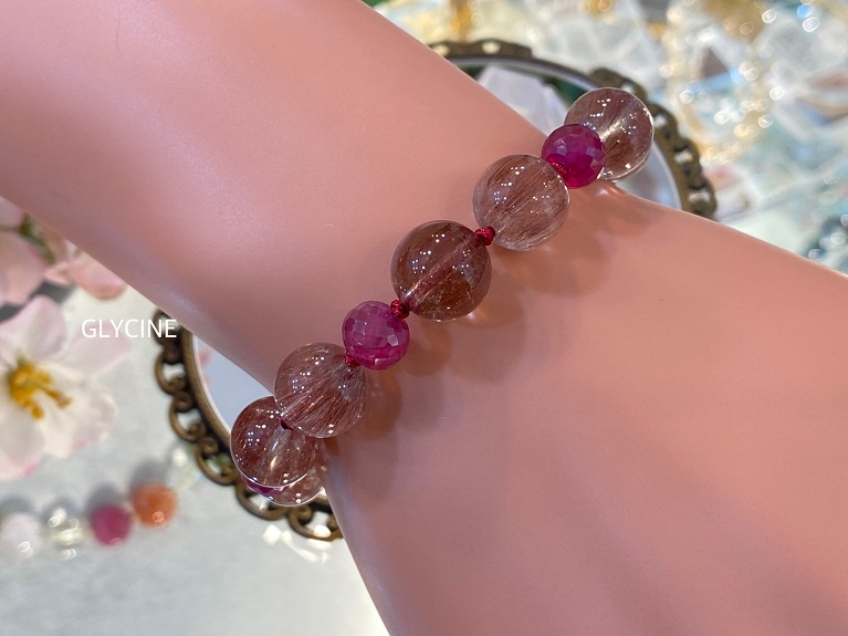 この中に写っていた、レッドルチルを使って新作のパワーストーンブレスレットを作りました!