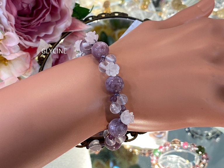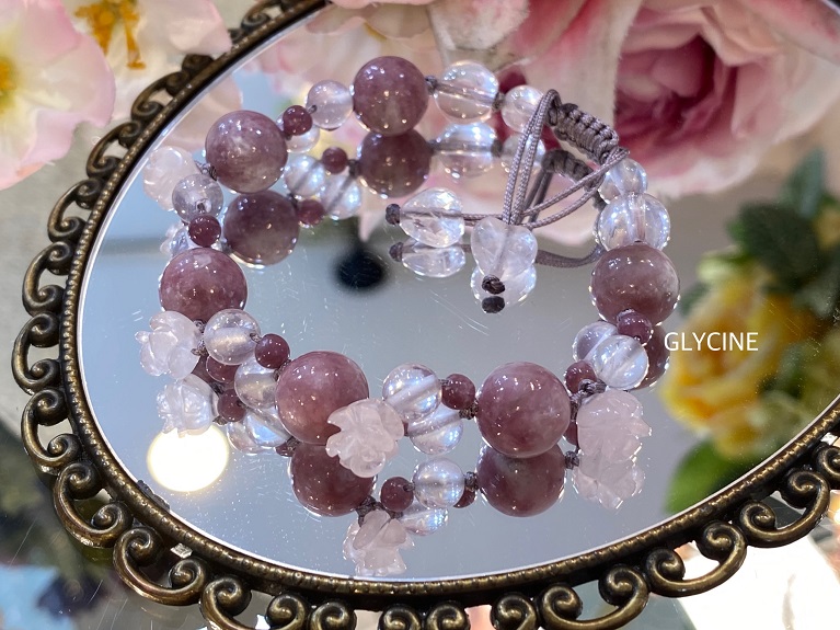 レピドライトに薔薇モチーフの天然石を合わせてもう1本♡