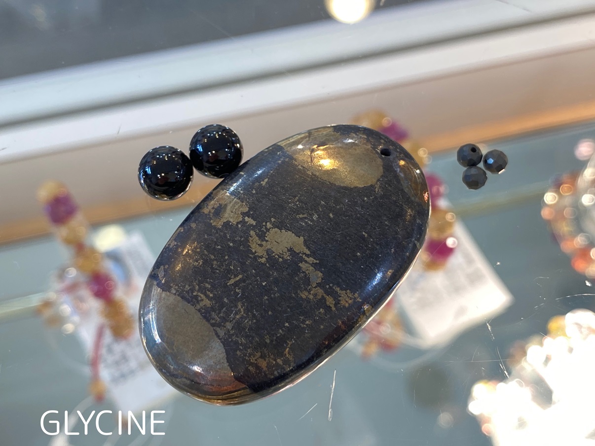 ネックレスチェーン部分に使う丸玉のオニキスを用意して、