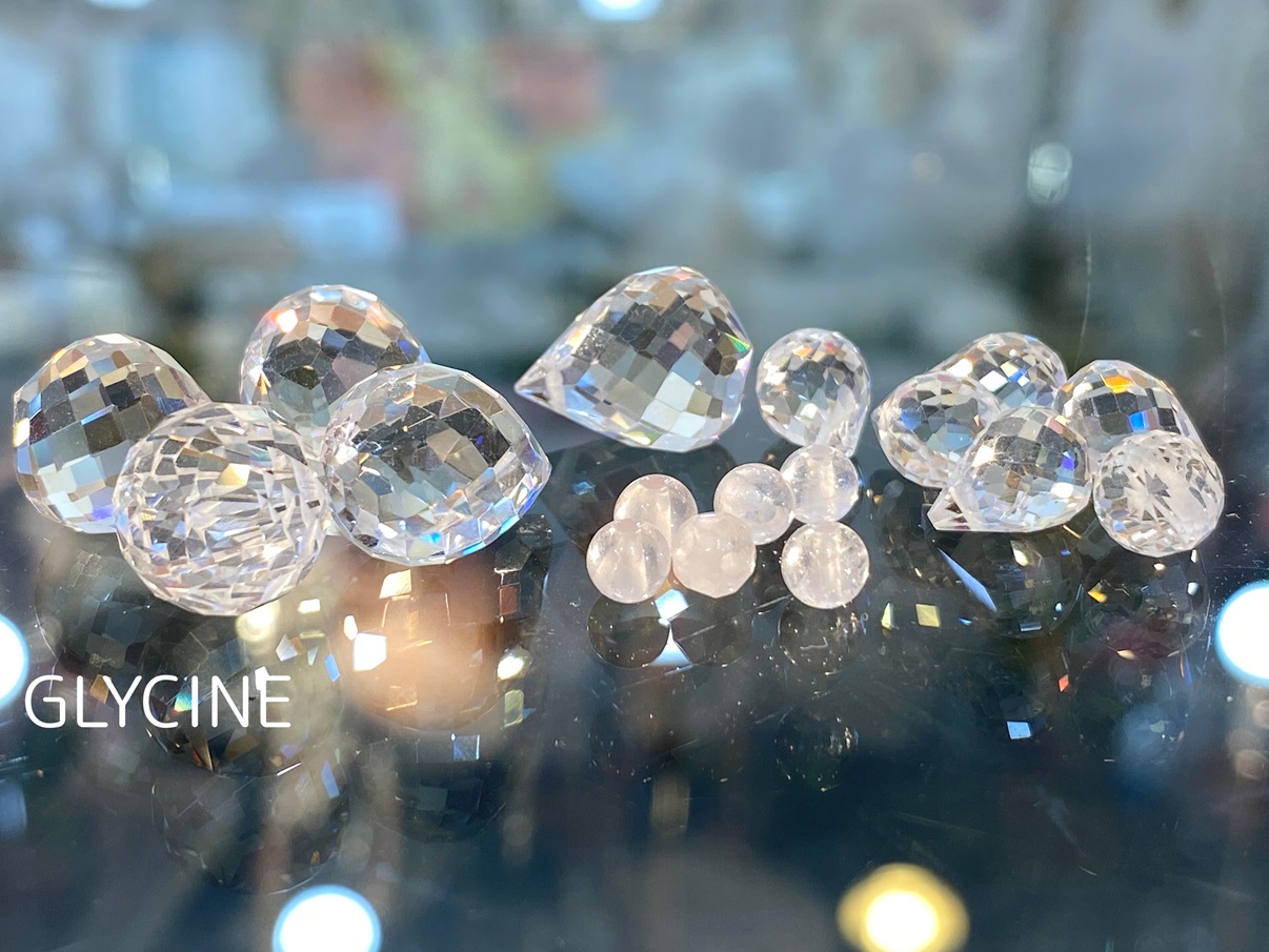 水晶は大きさの違う雫モチーフを2種類と、