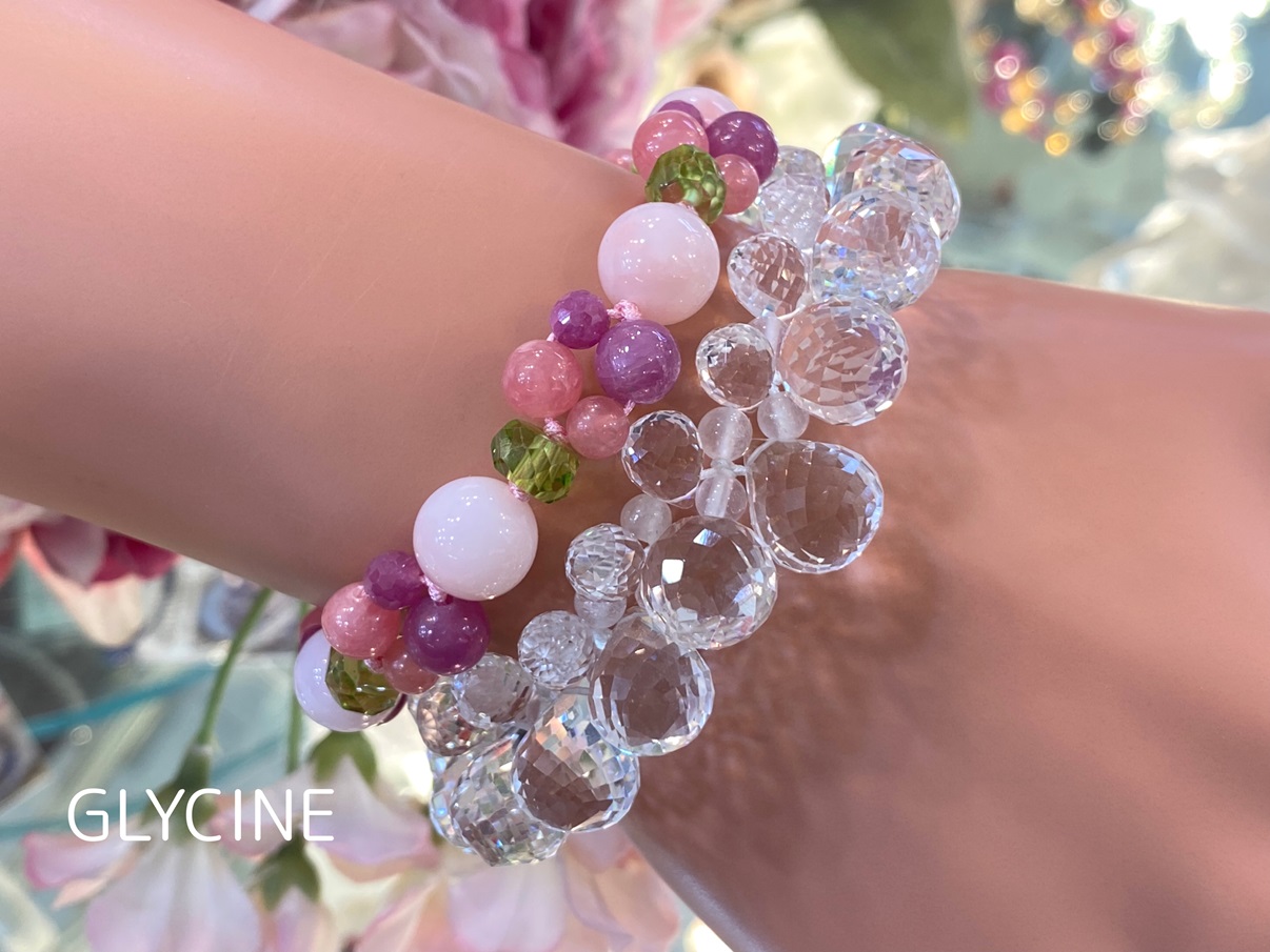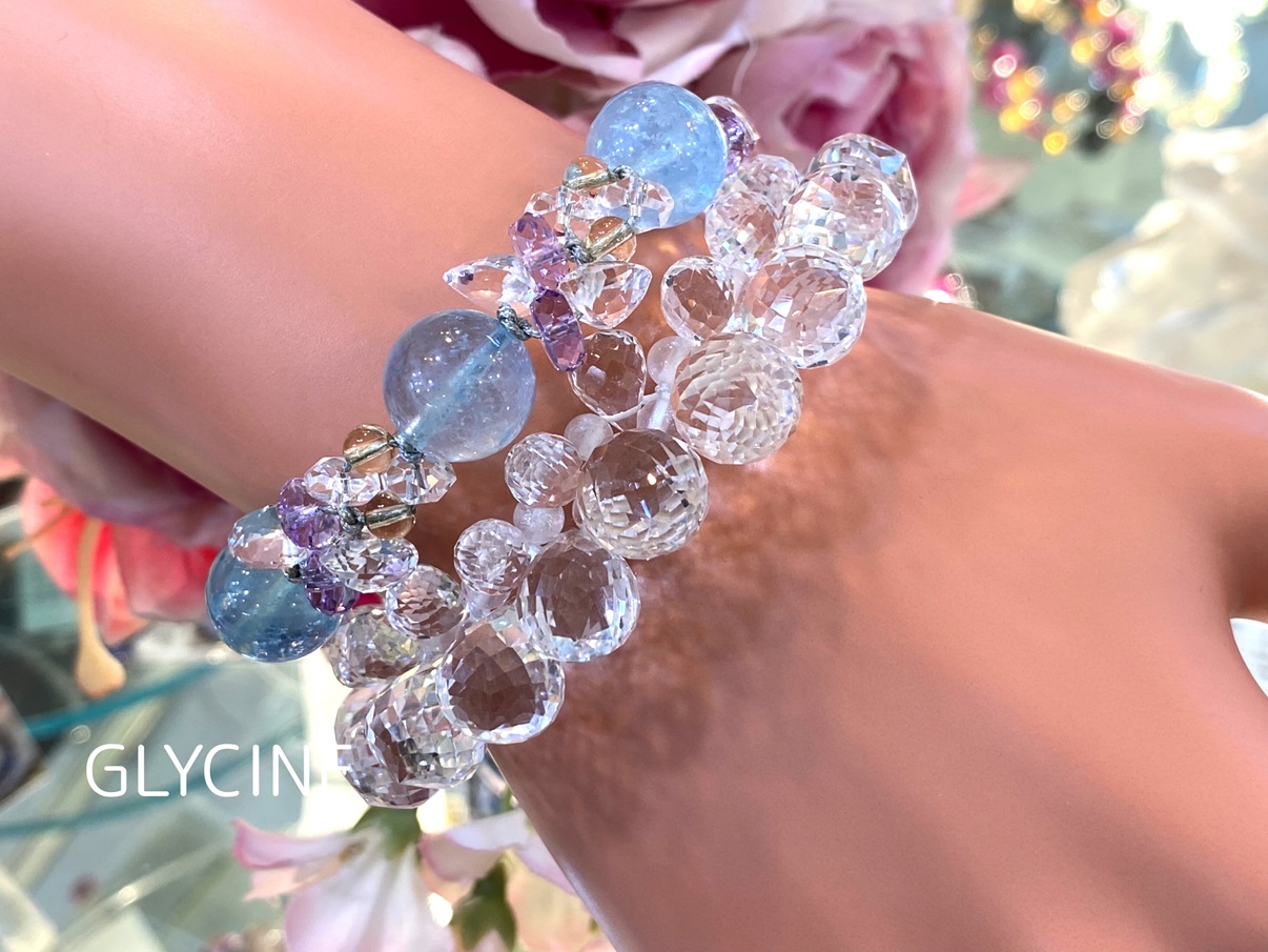 雫モチーフの水晶を使ったデザインの雫ちゃんシリーズは、透明感とキラキラ感とちゅるるん感が大人気のパワーストーンブレスレットです。