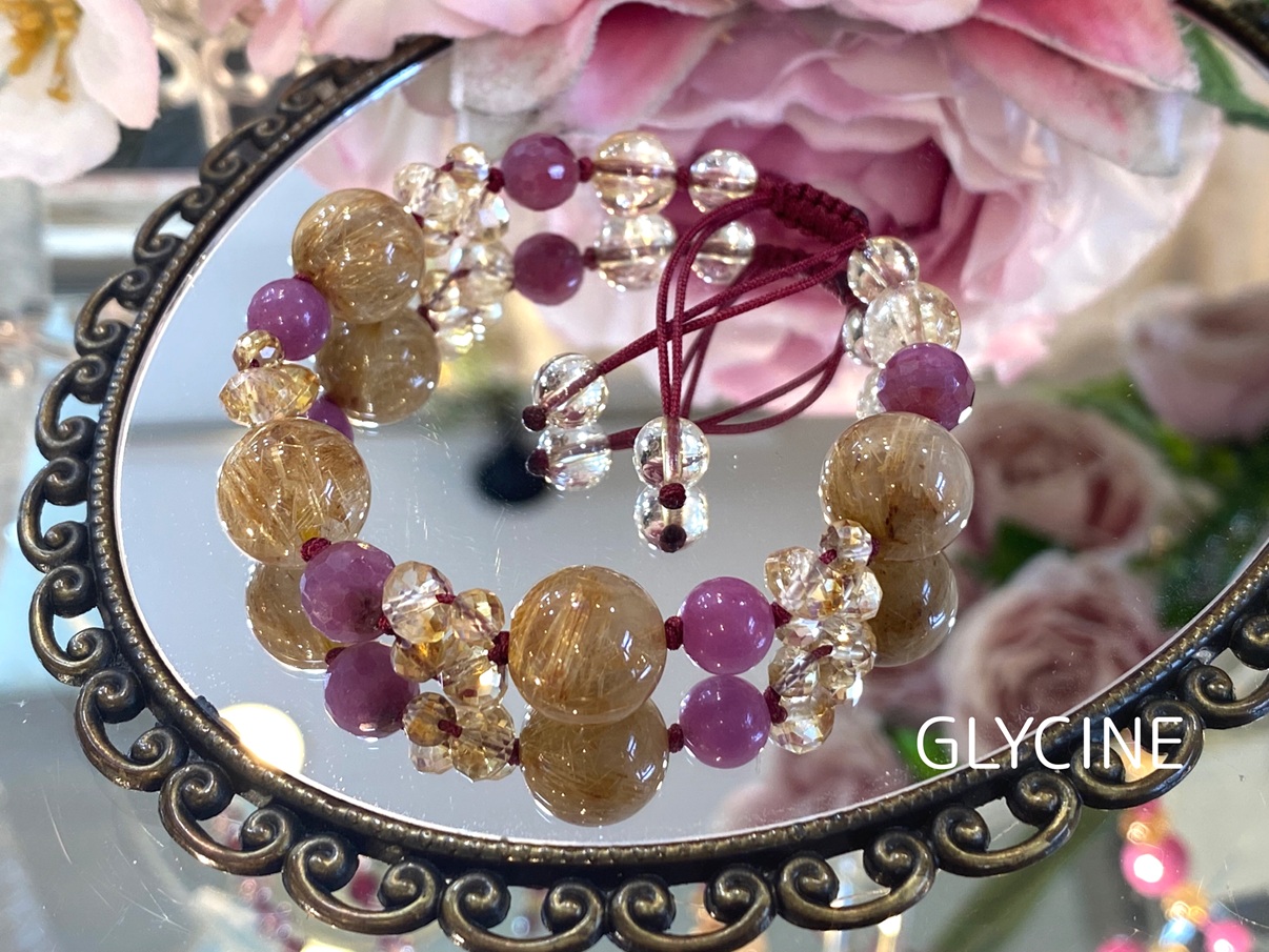 ルチルクォーツとルビーでデザインしたパワーストーンブレスレットは、