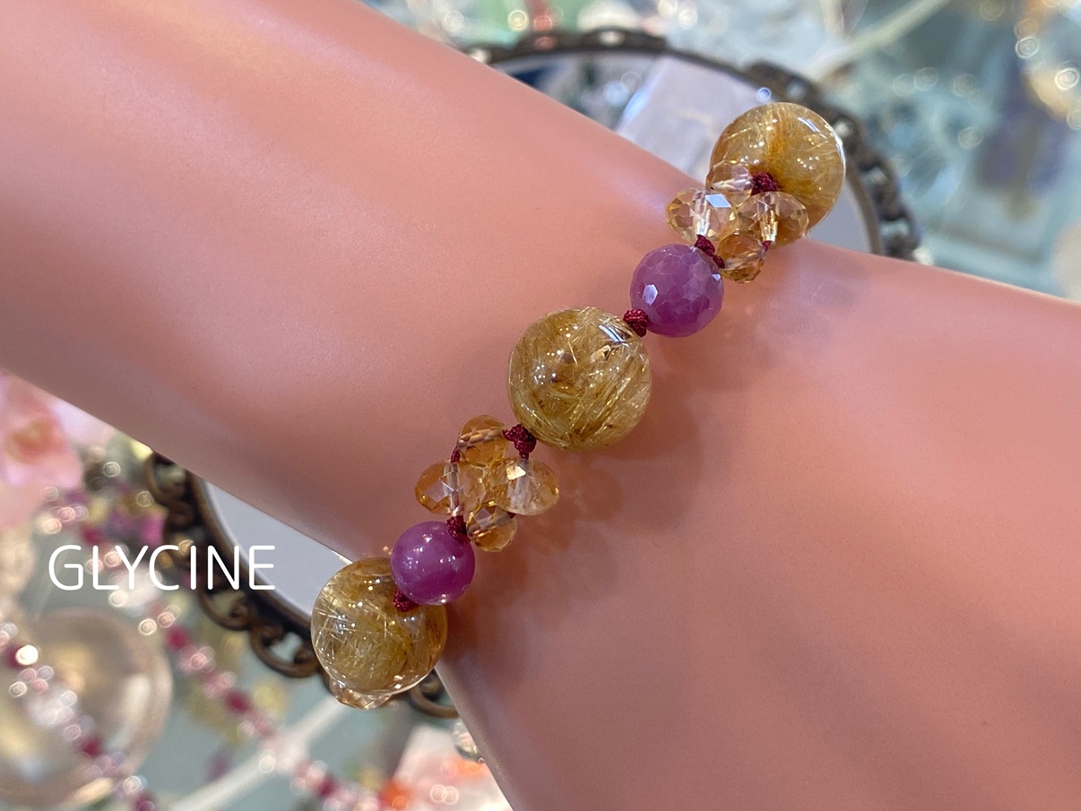 ルチルクォーツ、シトリン、ルビーの3種類の天然石でデザインしたパワーストーンブレスレットです!