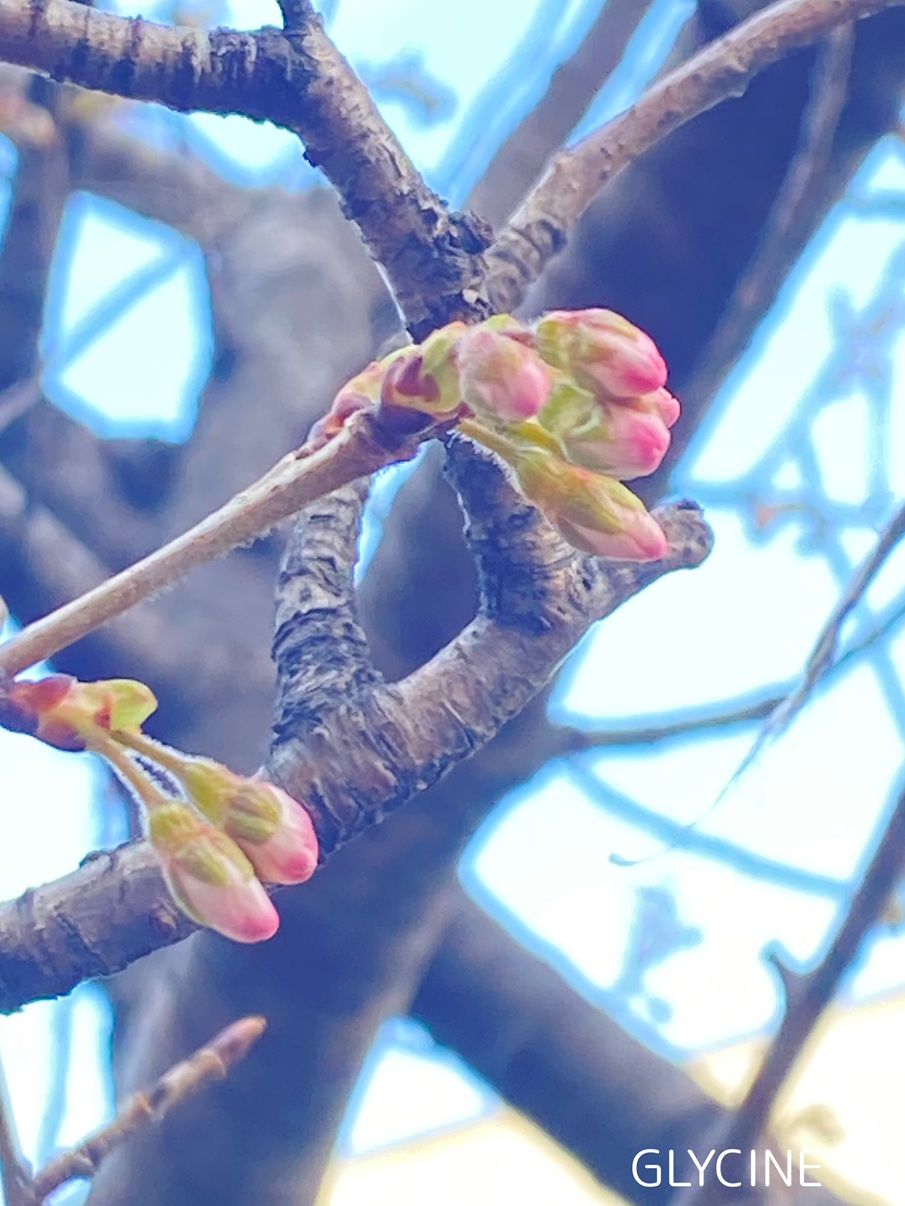 Glycine(グリシーヌ)近くに自生しているサクランボがなる桜の木の蕾もピンク色が見えてきていました♡