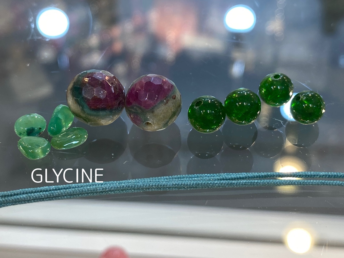 ジェムシリカ、ルビーインゾイサイト、クロムダイオプサイドです。