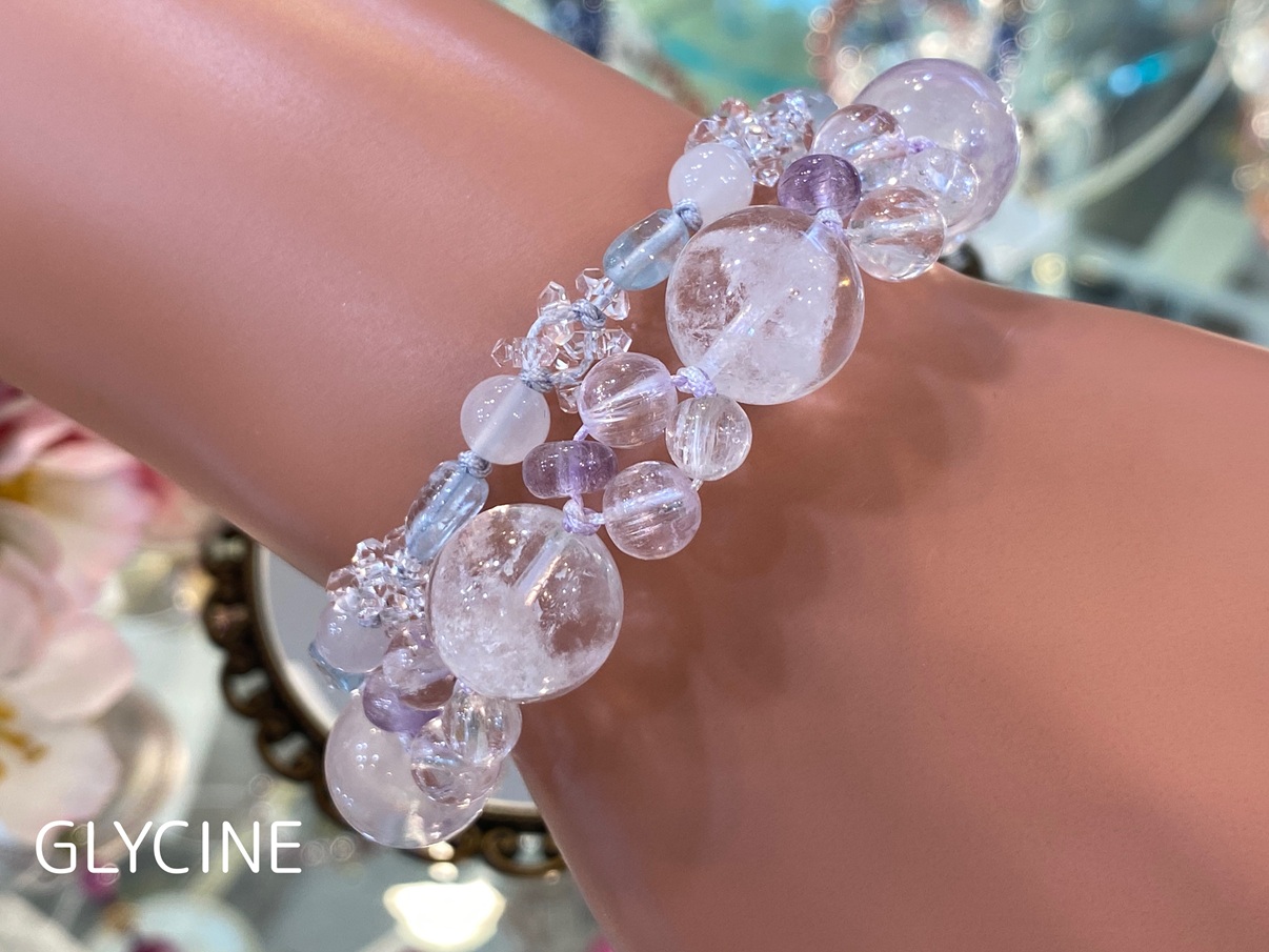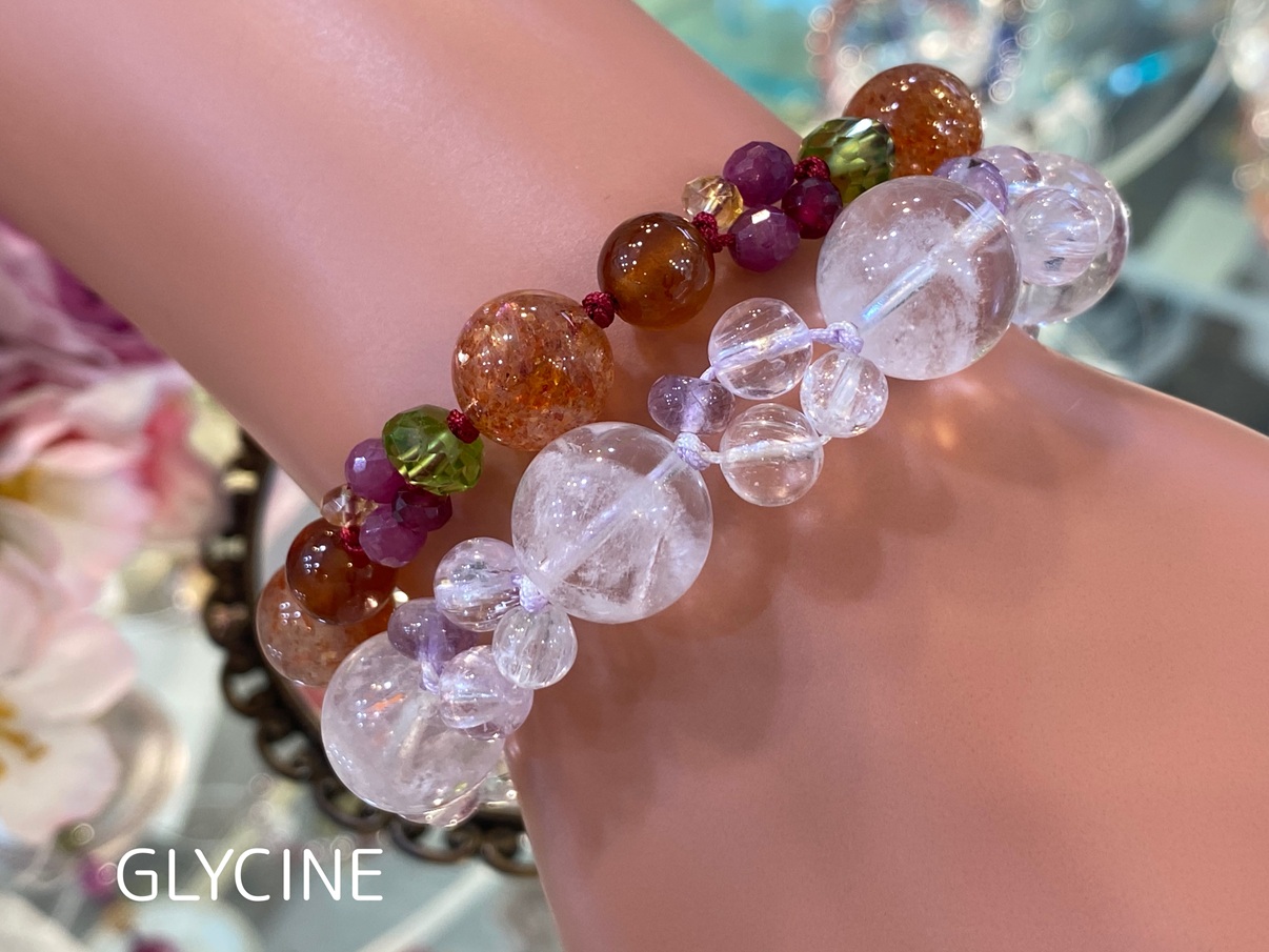 ご紹介中の新作のパワーストーンブレスレットに使った、ファントムクォーツとクンツァイトとスーパーセブンはこちらです。