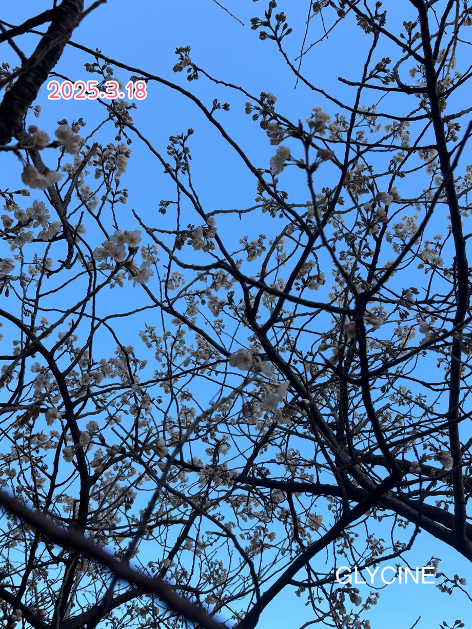 淡いピンク色の桜の花が開き始めていて、満開間近♪