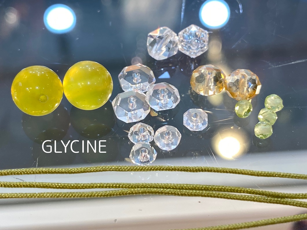 天然石たちを繋ぐ紐の色はグリーン系が良いなって思っていたのですが、