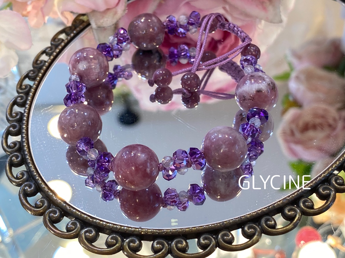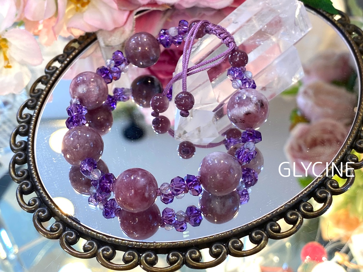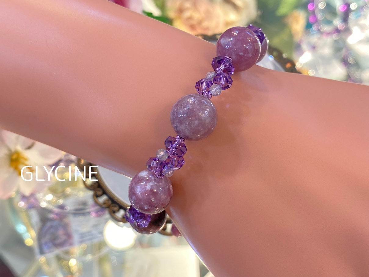 天然石の石言葉をご存じない方も、Glycine(グリシーヌ)にご来店くださってレピドライトに魅了されてお迎えされるという場面をよく目にします。
