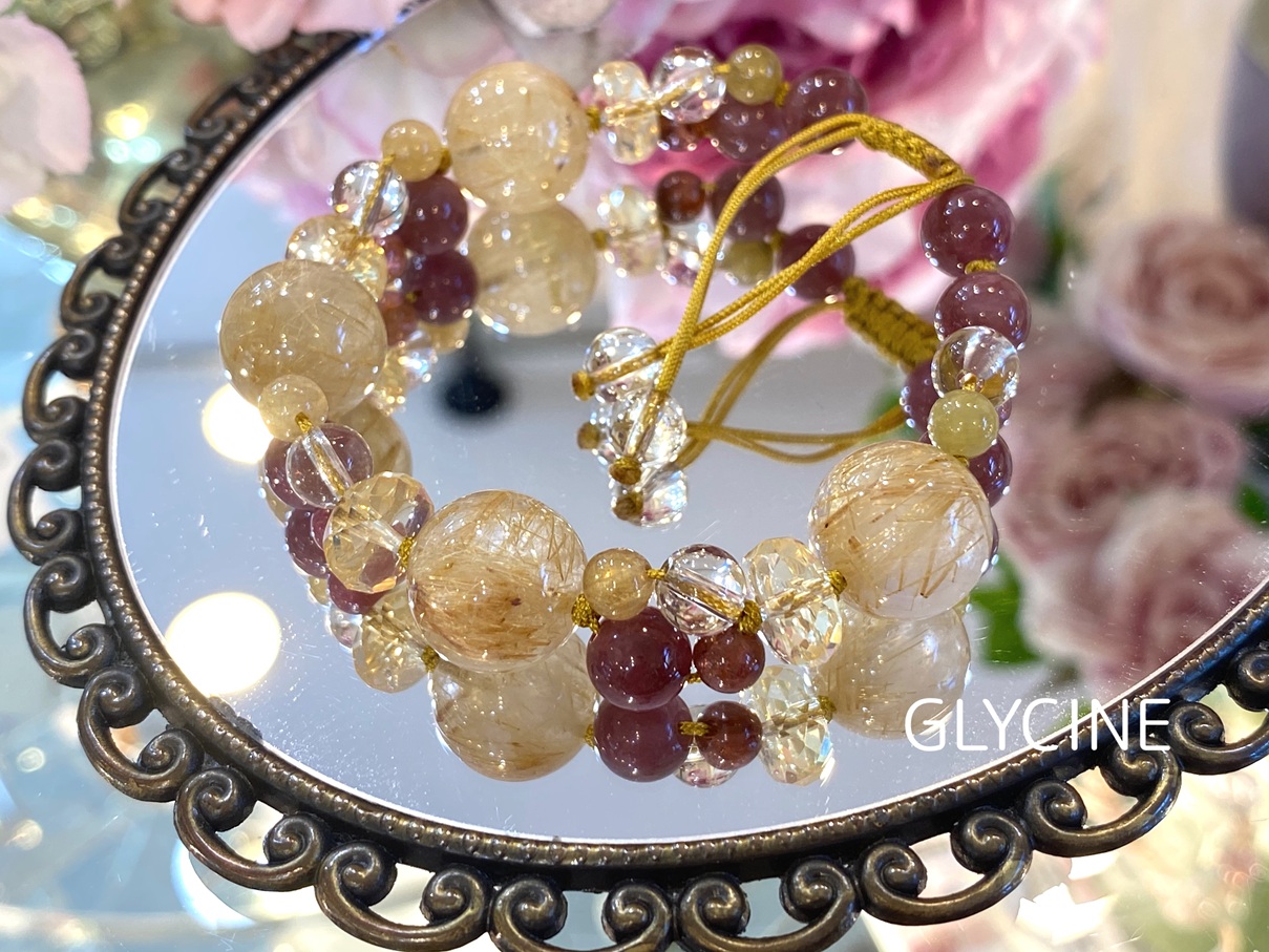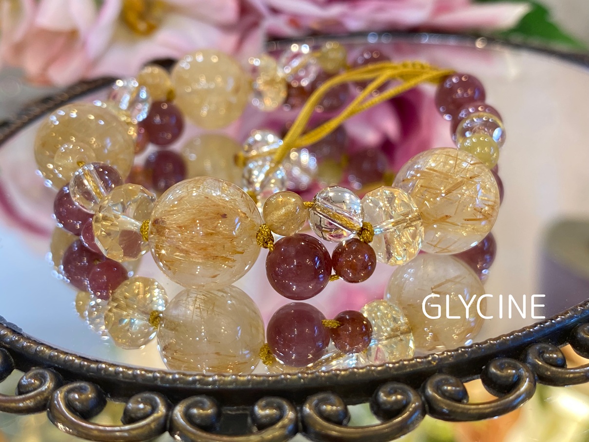 ルチルクォーツ、シトリン、トルマリンの3種類の天然石でデザインしたパワーストーンブレスレットのご紹介です!