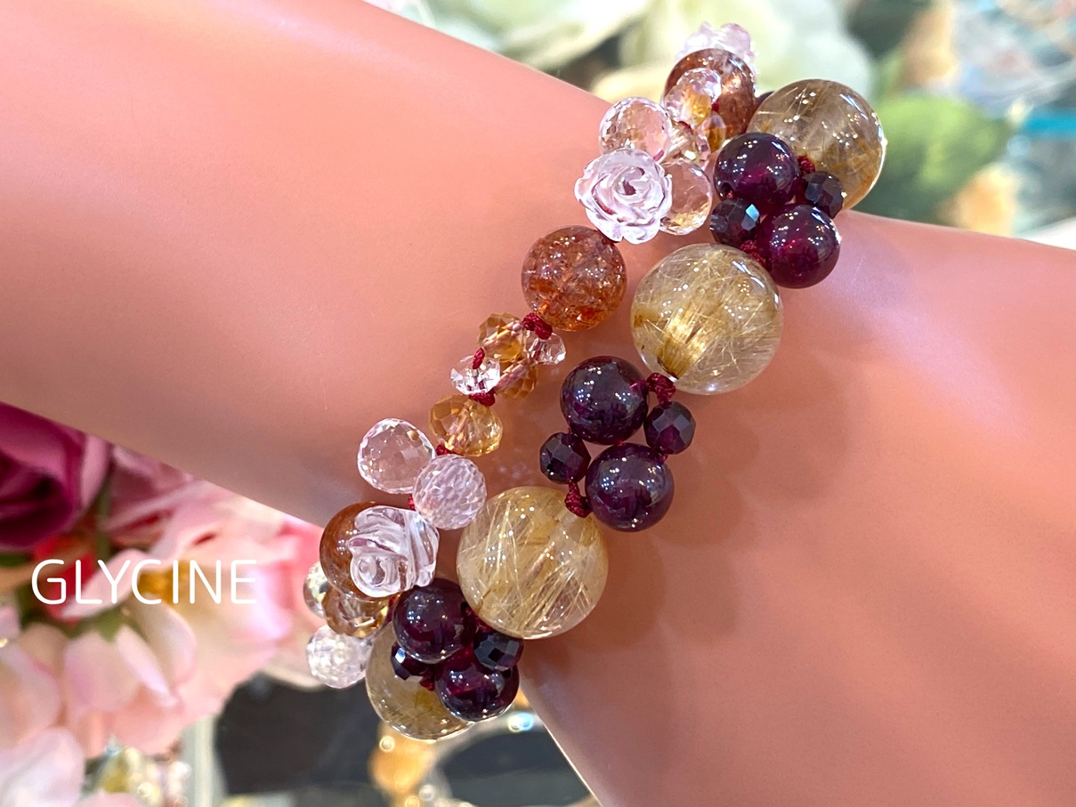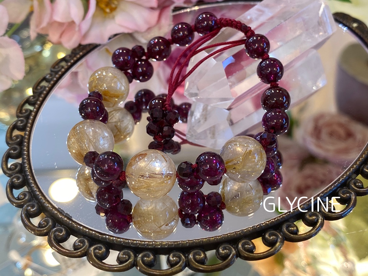 ご紹介中の新作のパワーストーンブレスレットに使ったルチルクォーツとガーネットはこちらです