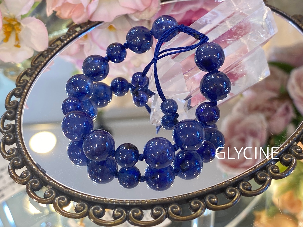 青いサファイアの新作のパワーストーンブレスレットでございます(*^^*)