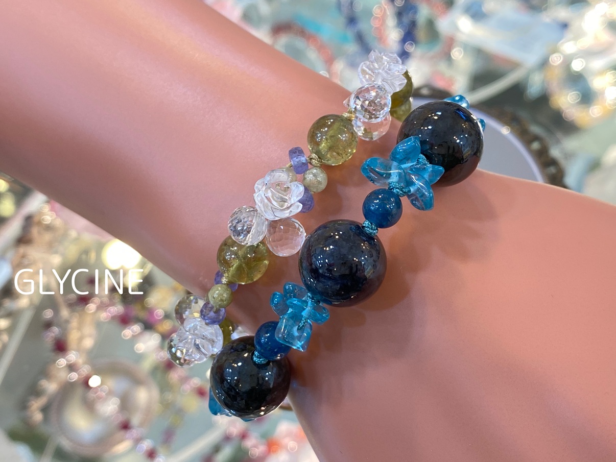 お洒落なブラック&ブルーのお色のパワーストーンブレスレットにしたくて、