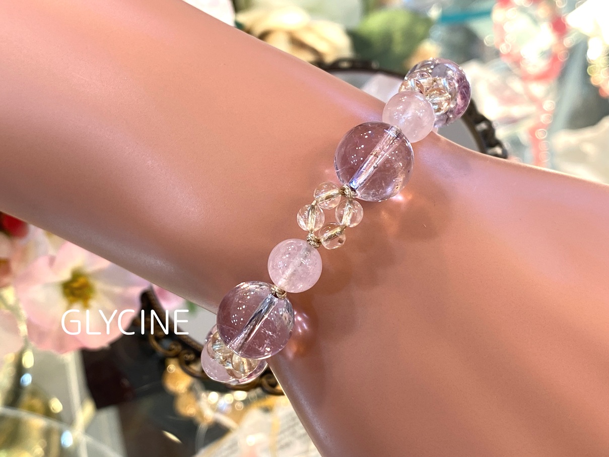 とっても上品で優しく輝くパワーストーンブレスレットでございます(*^^*)