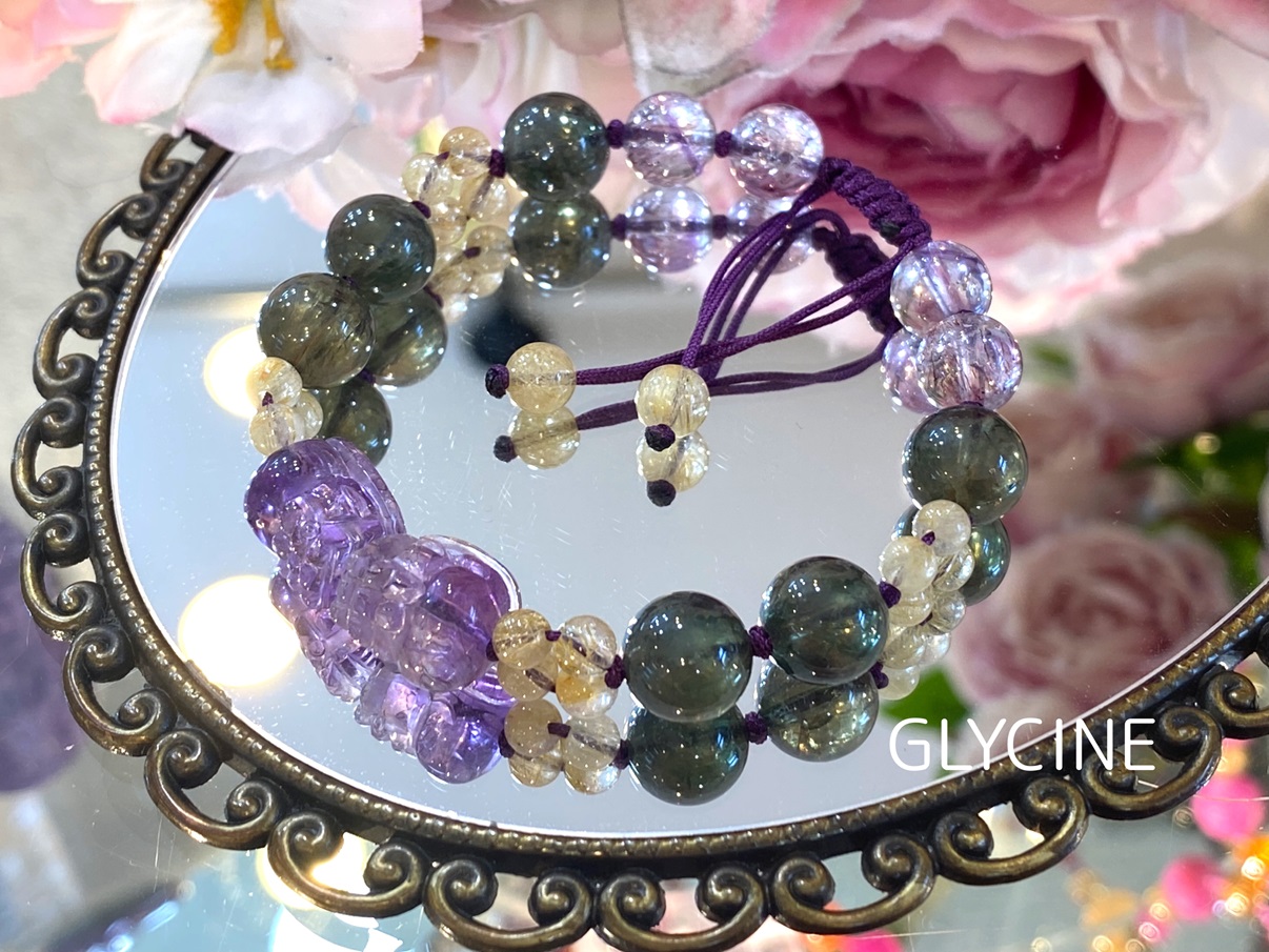 手首内側部分に使っているアメジストエレスチャルは丸玉です。