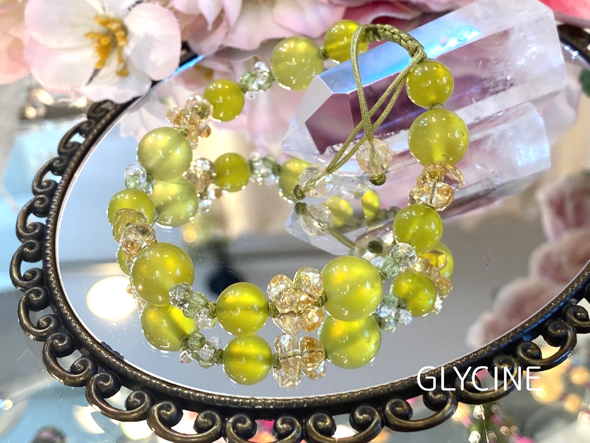 ご紹介中の新作のパワーストーンブレスレットに使ったサーペンチン(蛇紋石)、シトリン、ペリドット、水晶はこちらです。