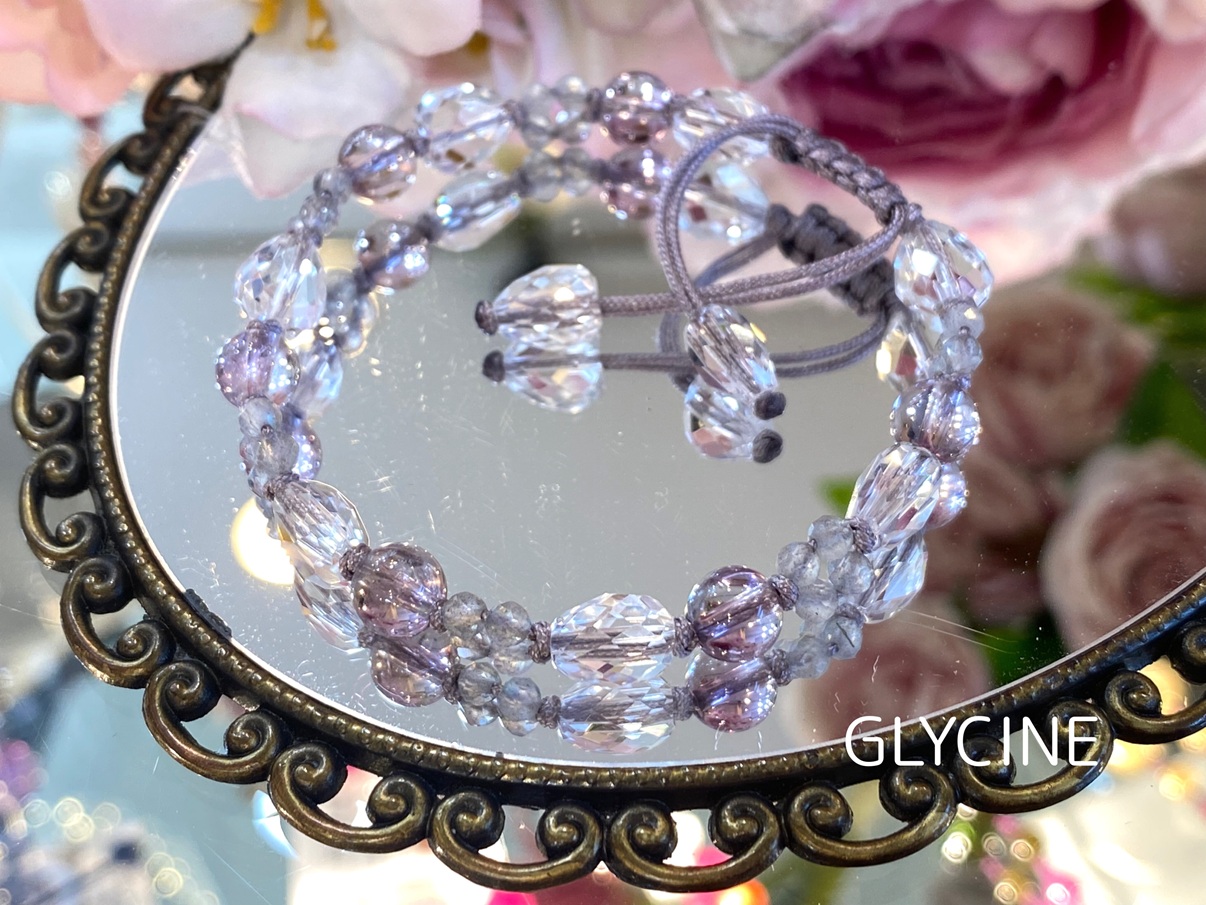 今日も、キラッキラ透明なハートモチーフの水晶とアメジストとラブラドライトでデザインした新作のパワーストーンブレスレットのご紹介です!!