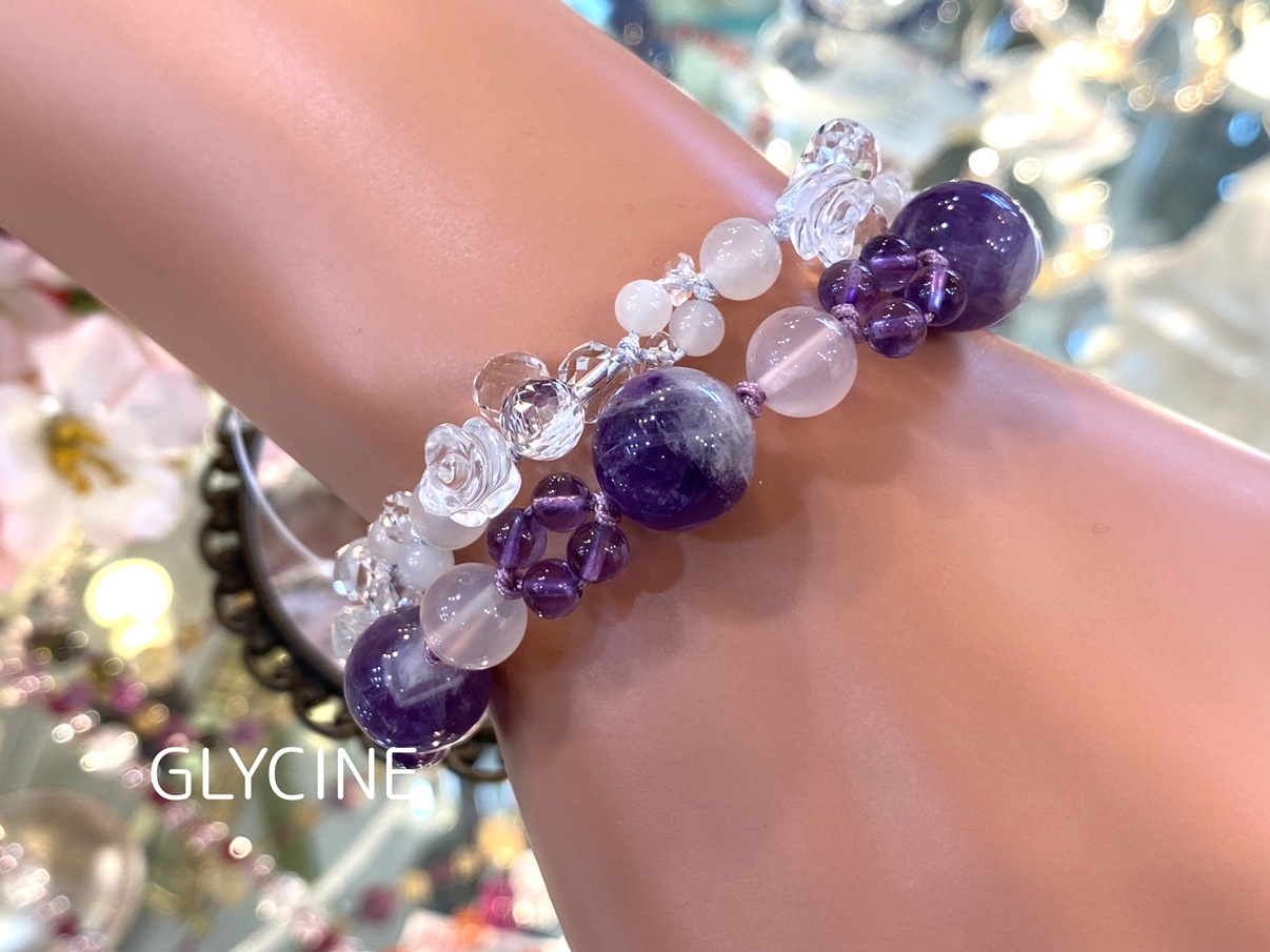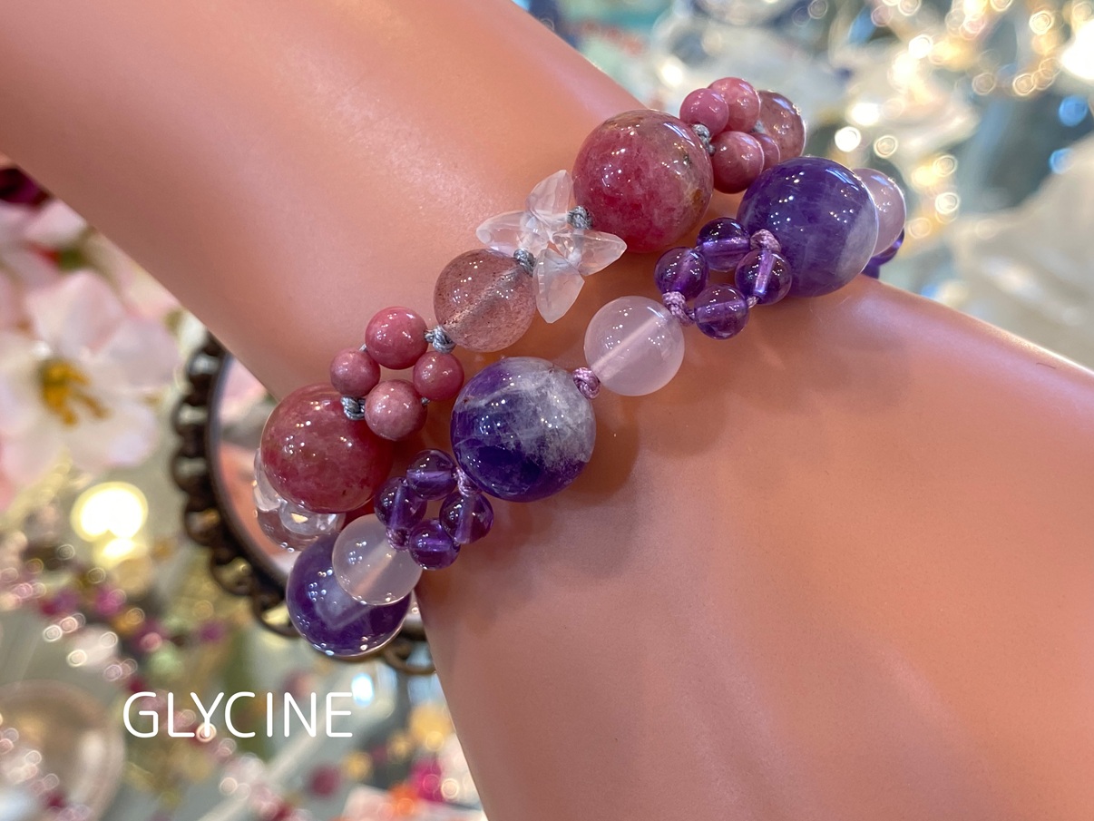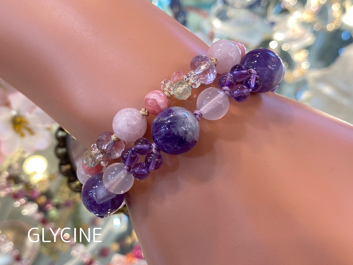 上品で可愛いお色のパワーストーンブレスレットを目にしたら、優しくて穏やかな笑顔になれて、良いご縁に恵まれそうですね( *´艸`)