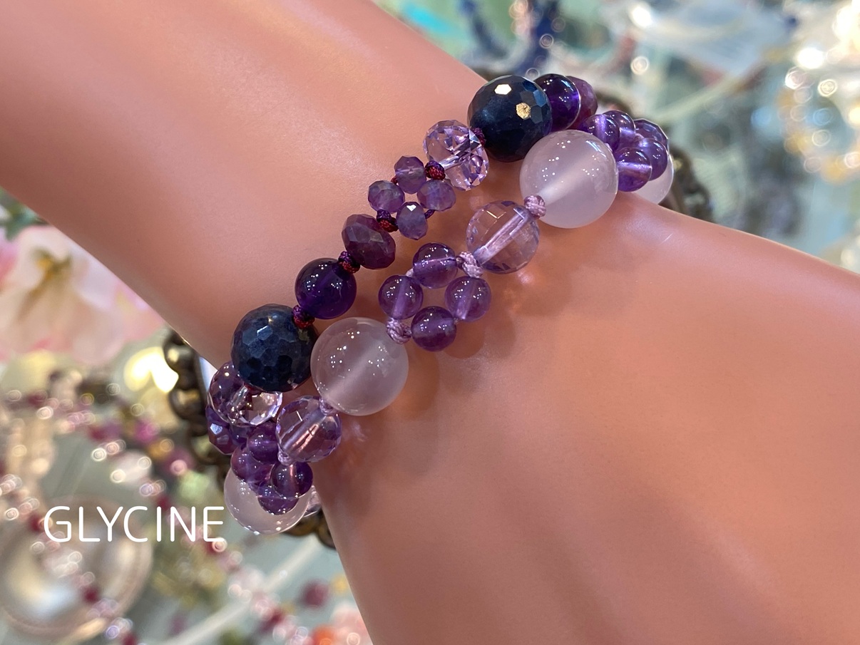 ご紹介中の新作のパワーストーンブレスレットに使ったアメジストとカルセドニーはこちらです。