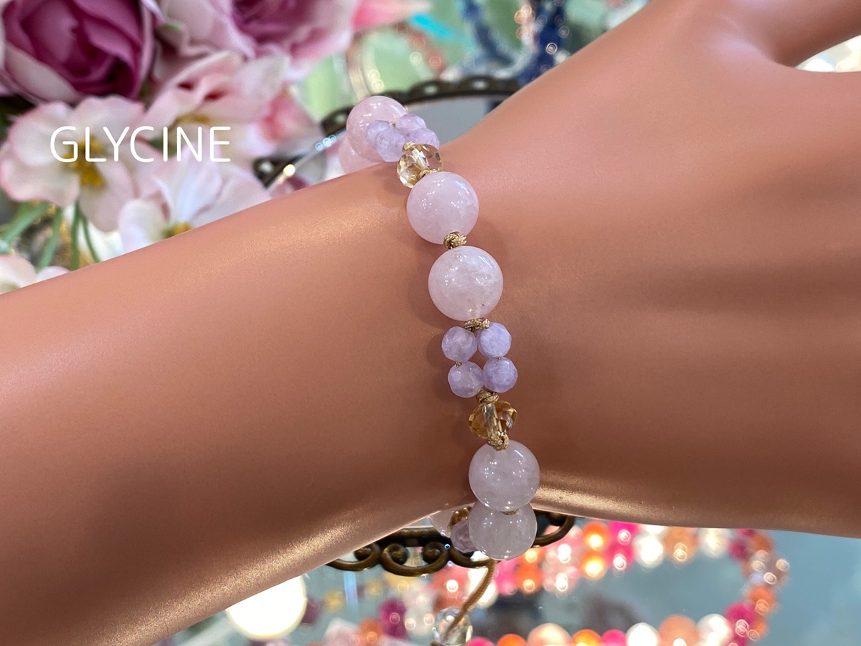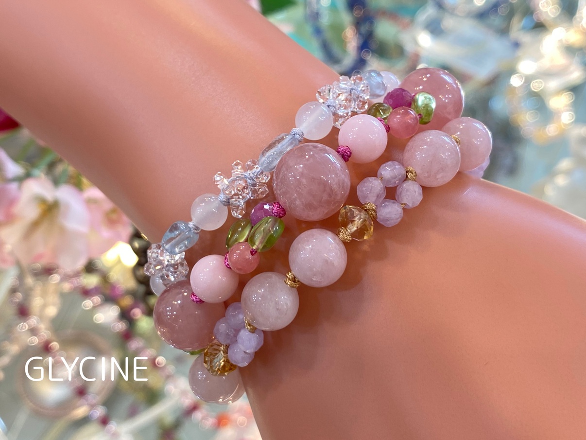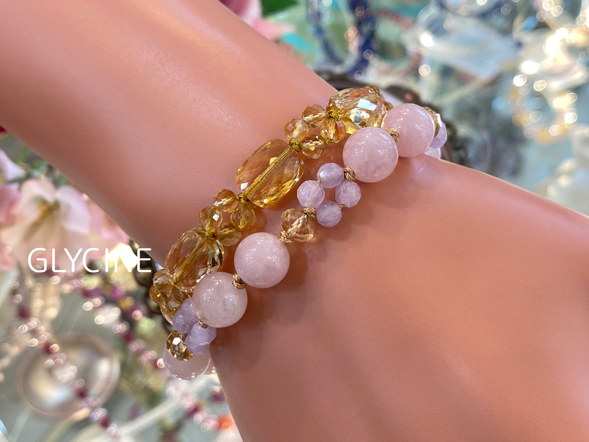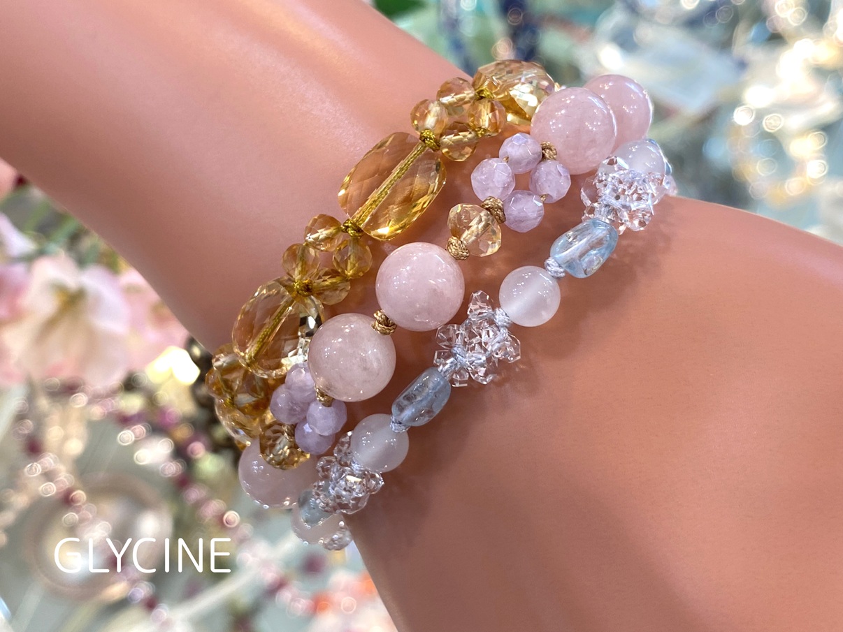 ご紹介中の新作のパワーストーンブレスレットに使ったモルガナイト、アメジスト、シトリンはこちらです。