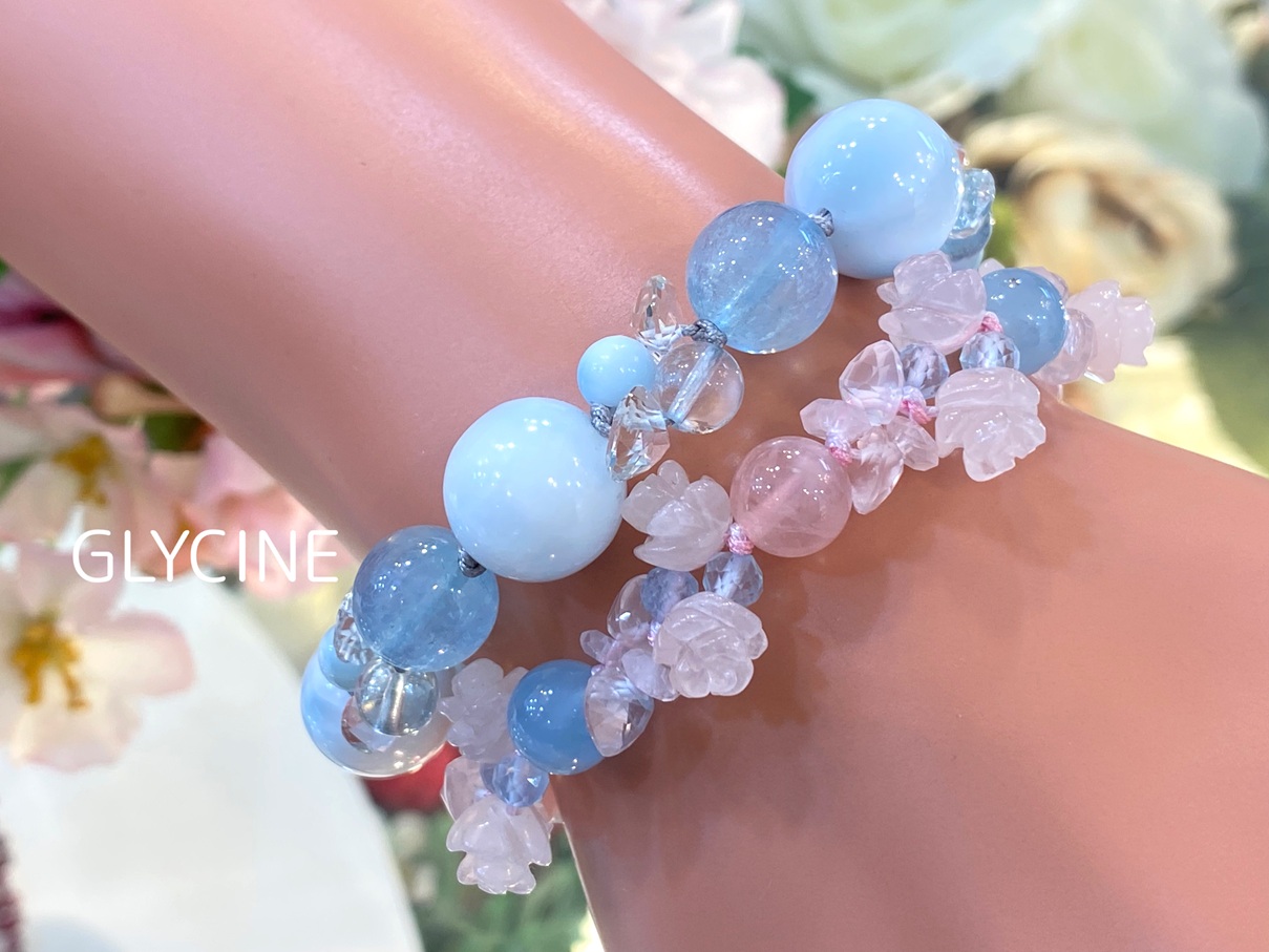 ご紹介中の新作のパワーストーンブレスレットに使ったローズクォーツとアクアマリンはこちらです。