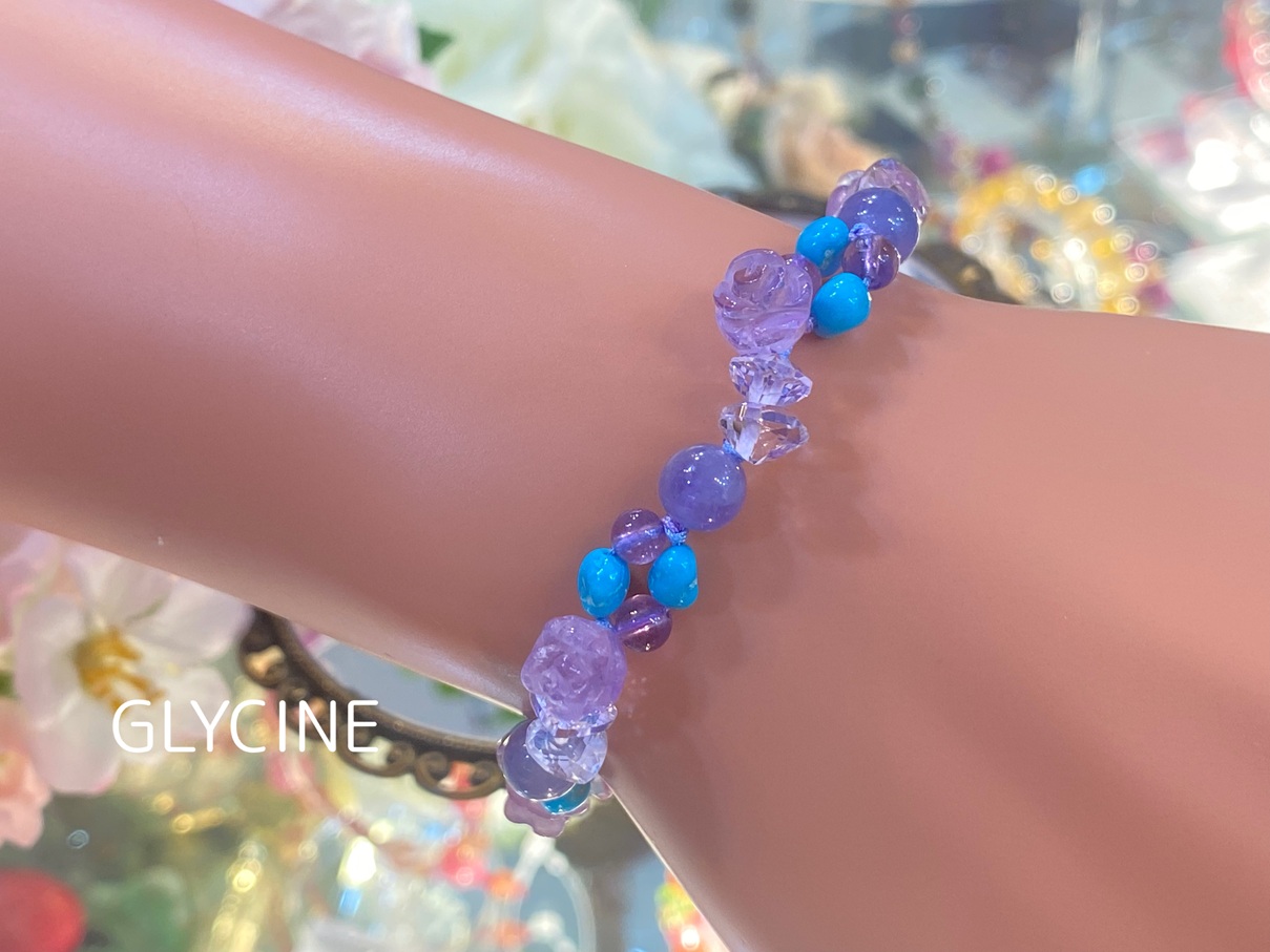 アメジスト、タンザナイト、ターコイズの3種類の天然石でデザインしたパワーストーンブレスレットです♪