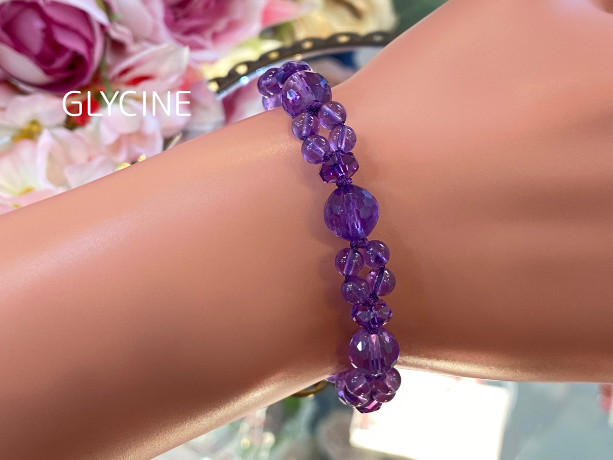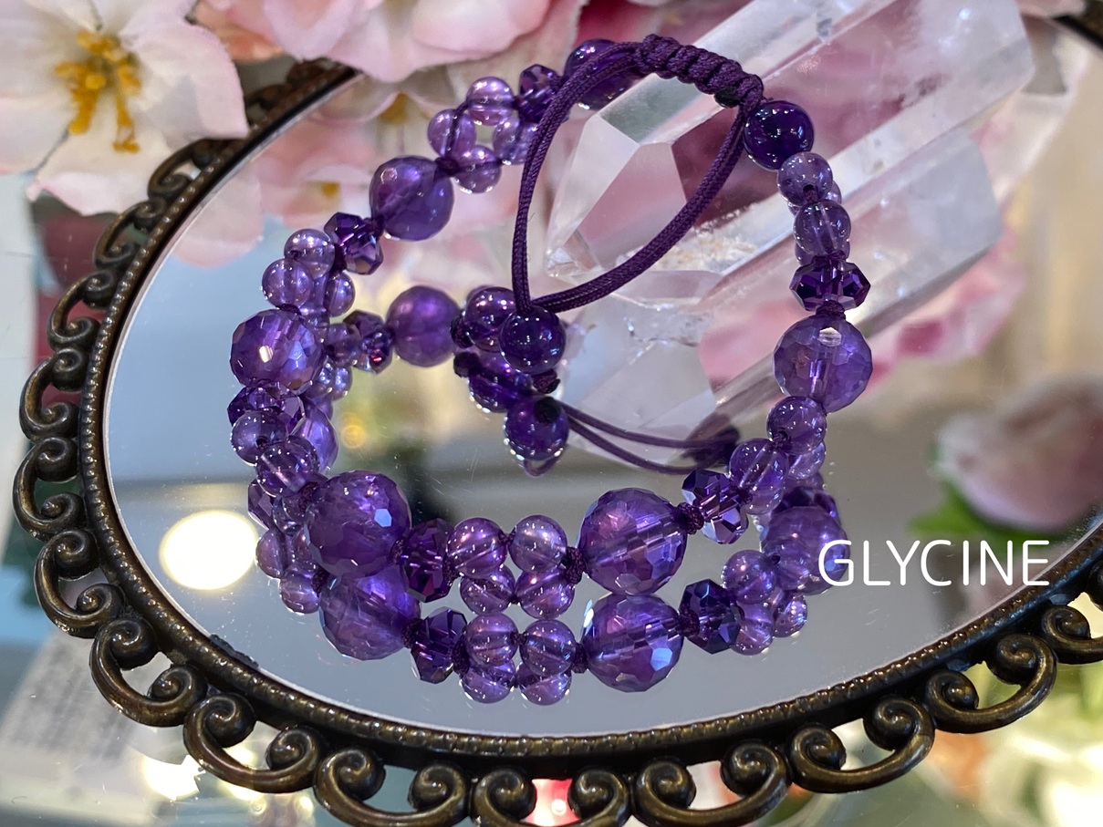 手首内側部分とぷらぷら部分に使う用のアメジストのだけ濃い紫色をしていますが、