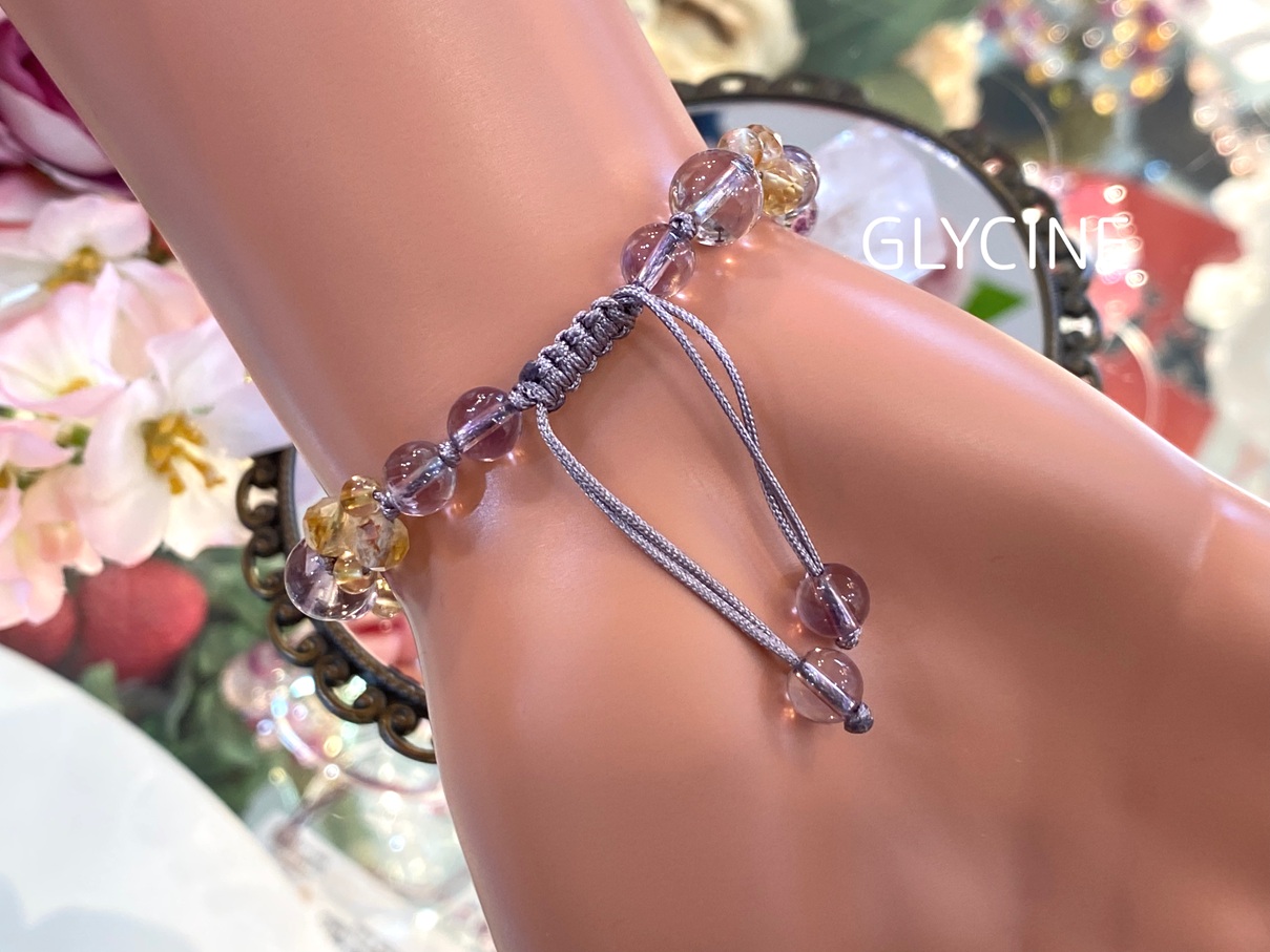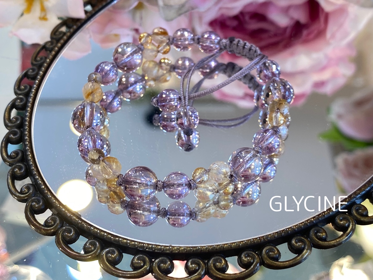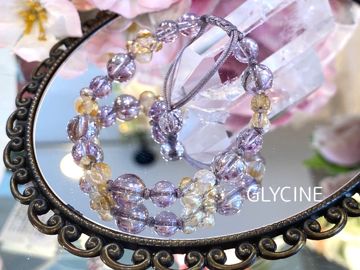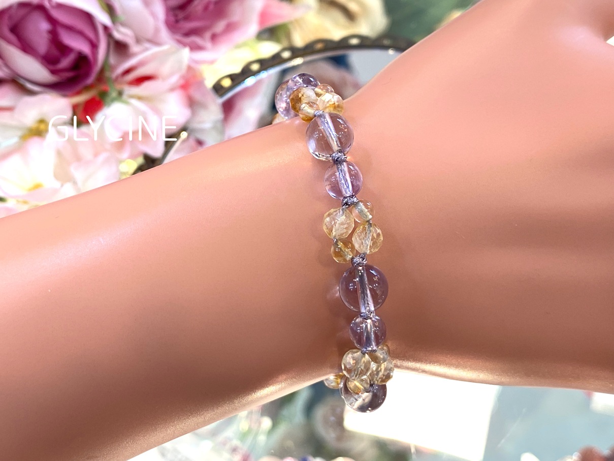 Glycine(グリシーヌ)のお客様たちからの人気も高い、アメジストとシトリンの2種類の天然石でデザインしたパワーストーンブレスレットです。