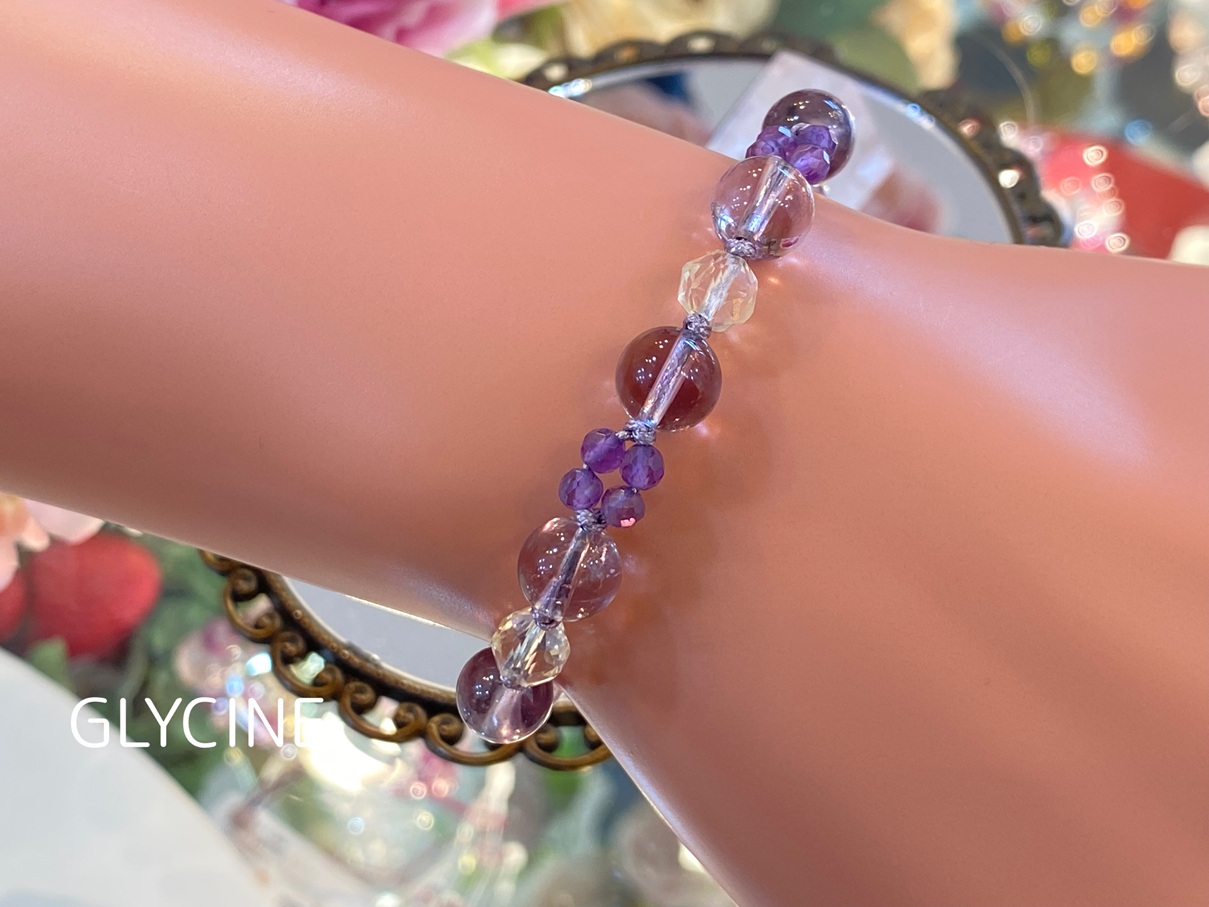 先日から紹介させていただいている幸運体質になるためのベースストーン アメジストとシトリンの2種類の天然石でデザインしたパワーストーンブレスレットです。