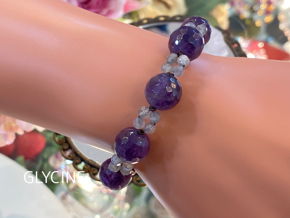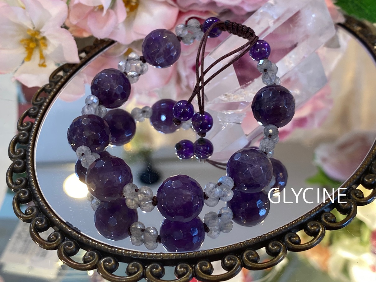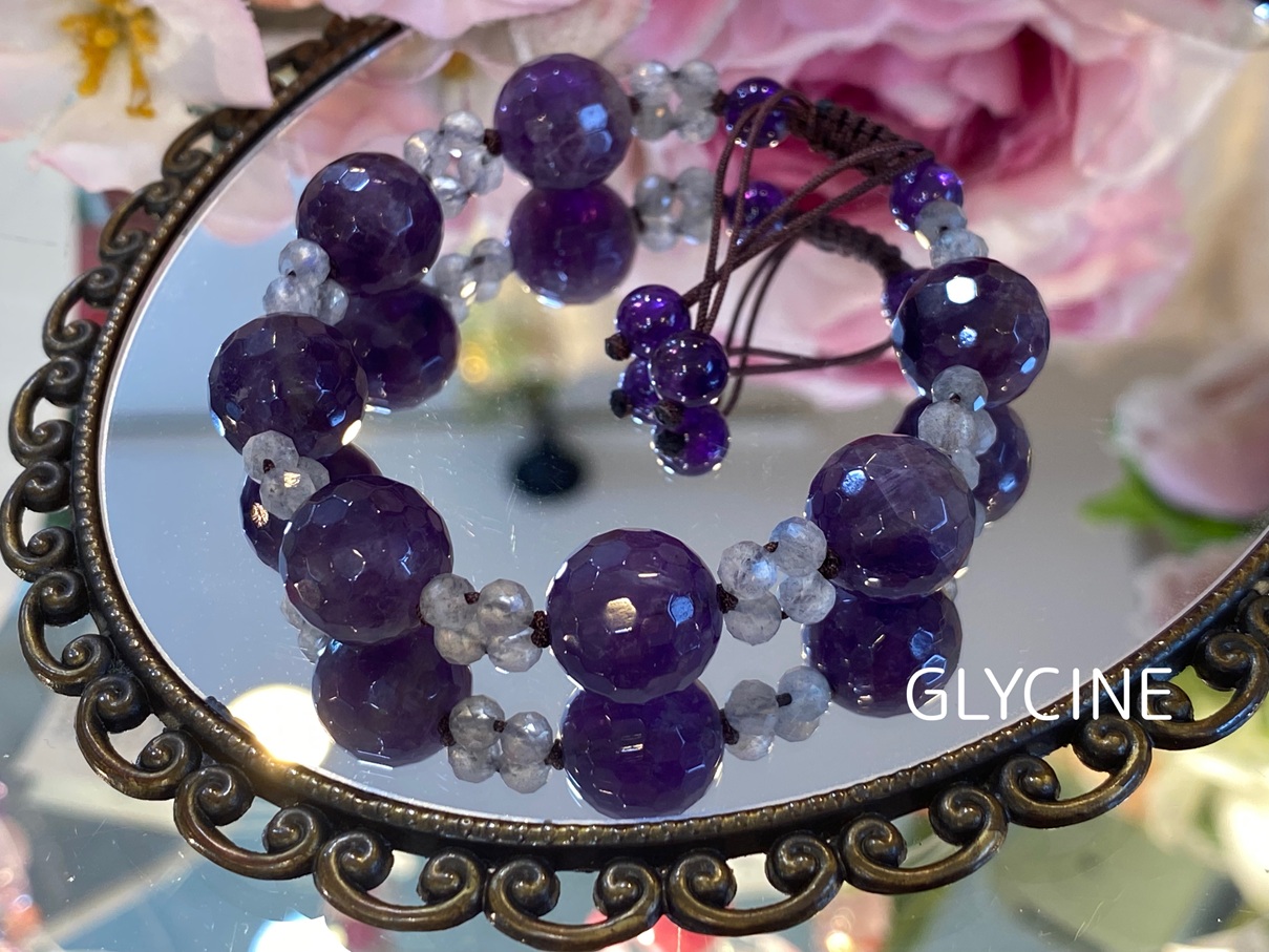 アメジストとラブラドライトの2種類の天然石でデザインしたパワーストーンブレスレットです♪